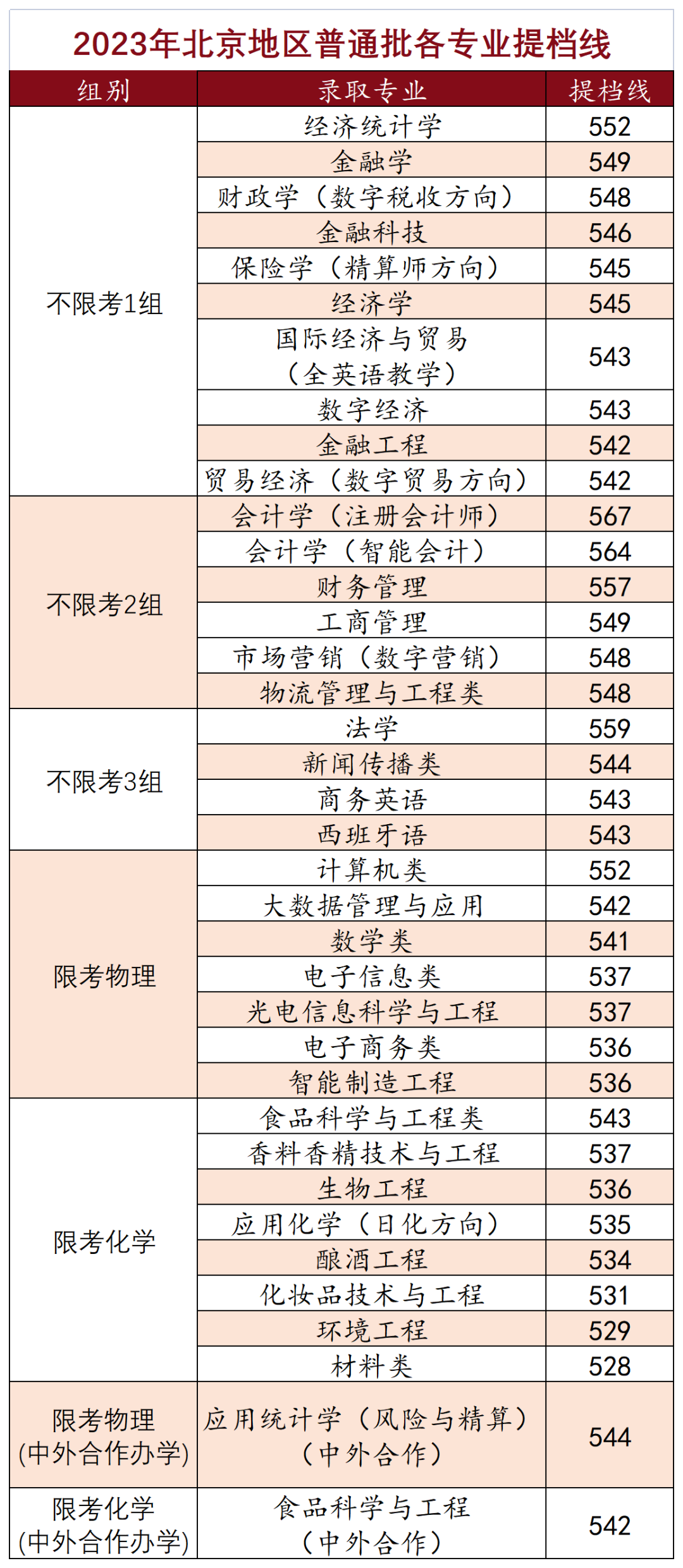 专业录取分数线汇总:2023年全国重点高校在京专业录取分数线汇总