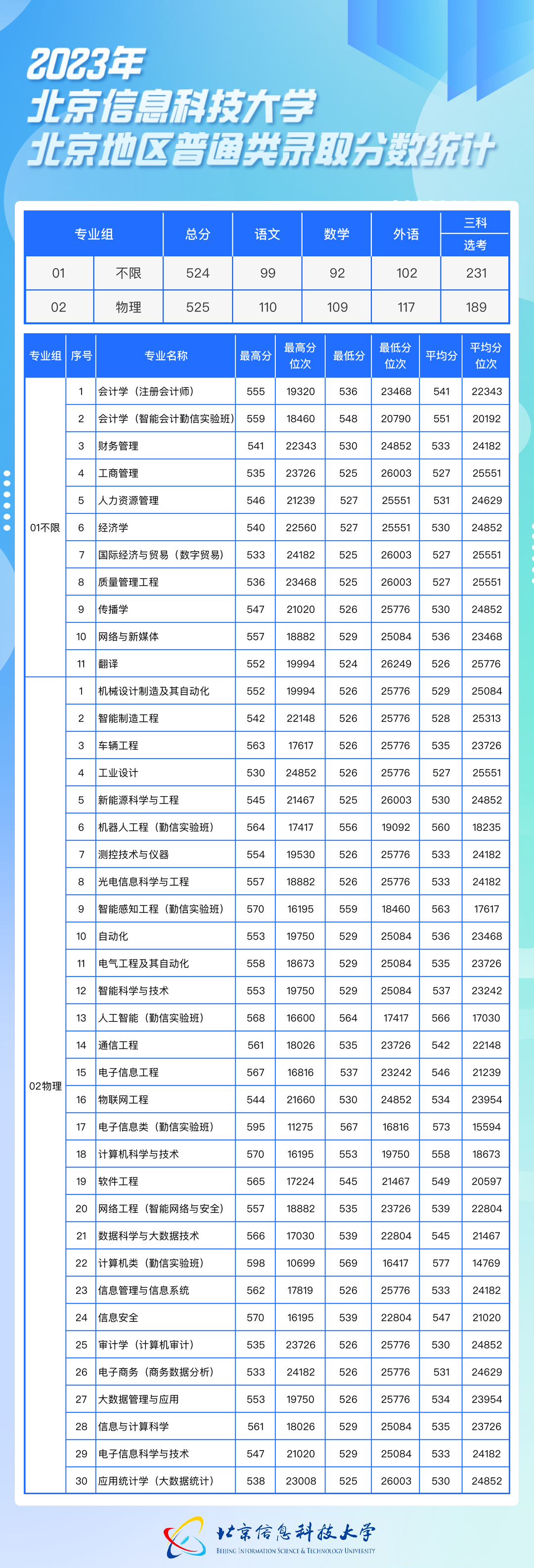北京信息科技大学023在京各专业录取分数线已经公布,院校各专业招生分数线不同,一方面可能回事不同的批次,另一方面,专业会因报考者数量的不同而不同,热门的专业分数线比较高,冷门的专业分数线就会比较低,考生报考时需要了解院校各专业的具体录取分数。