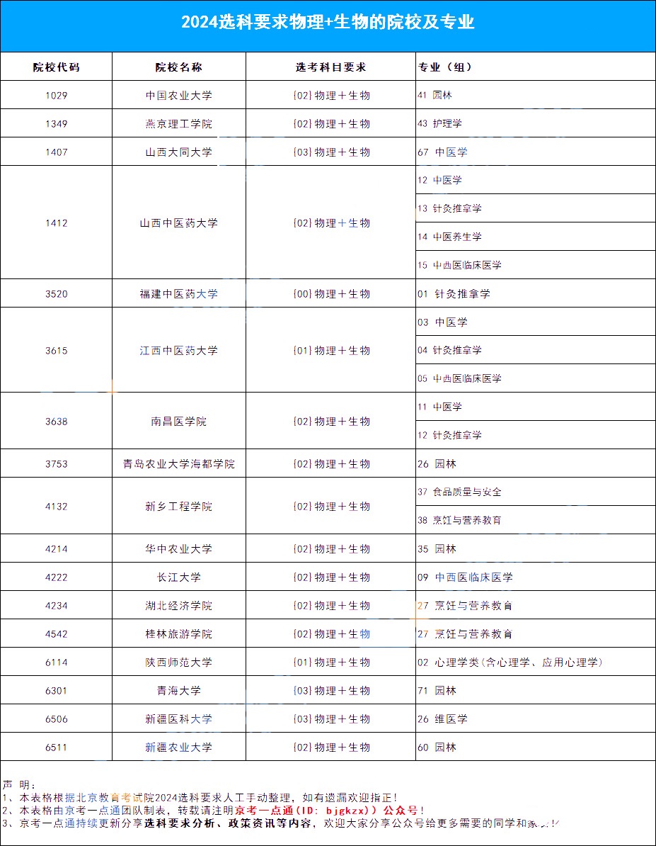 2024年北京高考依旧是3+3选科模式,选科要求中必选物理+生物的院校和专业有哪些?admw360高考复读学校将符合条件的院校及专业整理了出来,一起来看~