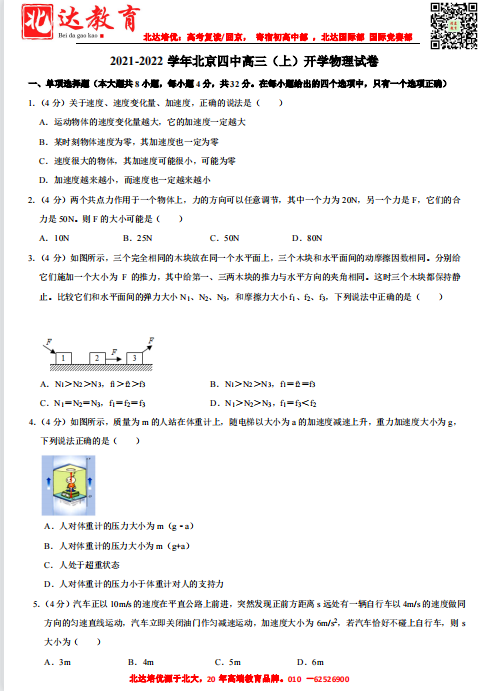 2023年北京高三开学考如期开考,admw360高考复读学校整理了部分物理试题考卷与答案,供各位考生参考,点击下方链接还可以下载电子版。
