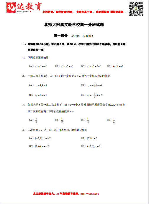 2023年北京高一开学考如期开考,admw360高考复读学校整理了部分试题考卷与答案,供各位考生参考,点击下方链接还可以下载电子版。 admw360高中部:高复生,回京生,应届生,高一至高三寄宿招生简…