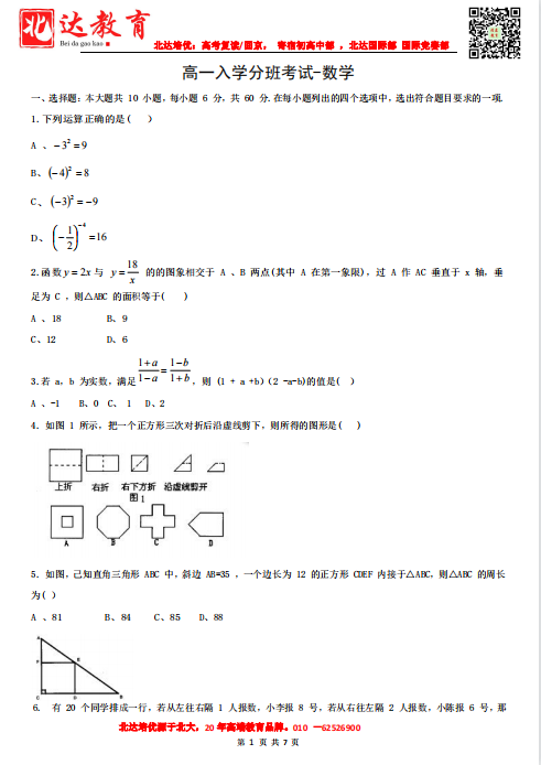 2023年北京高一开学考如期开考,admw360高考复读学校整理了部分试题考卷与答案,供各位考生参考,点击下方链接还可以下载电子版。 admw360高中部:高复生,回京生,应届生,高一至高三寄宿招生简…
