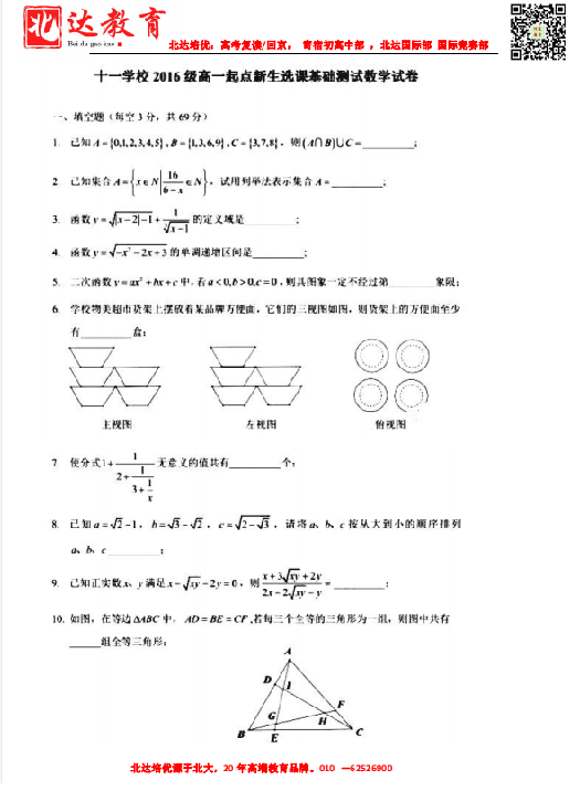 2023年北京高一开学考如期开考,admw360高考复读学校整理了部分试题考卷与答案,供各位考生参考,点击下方链接还可以下载电子版。