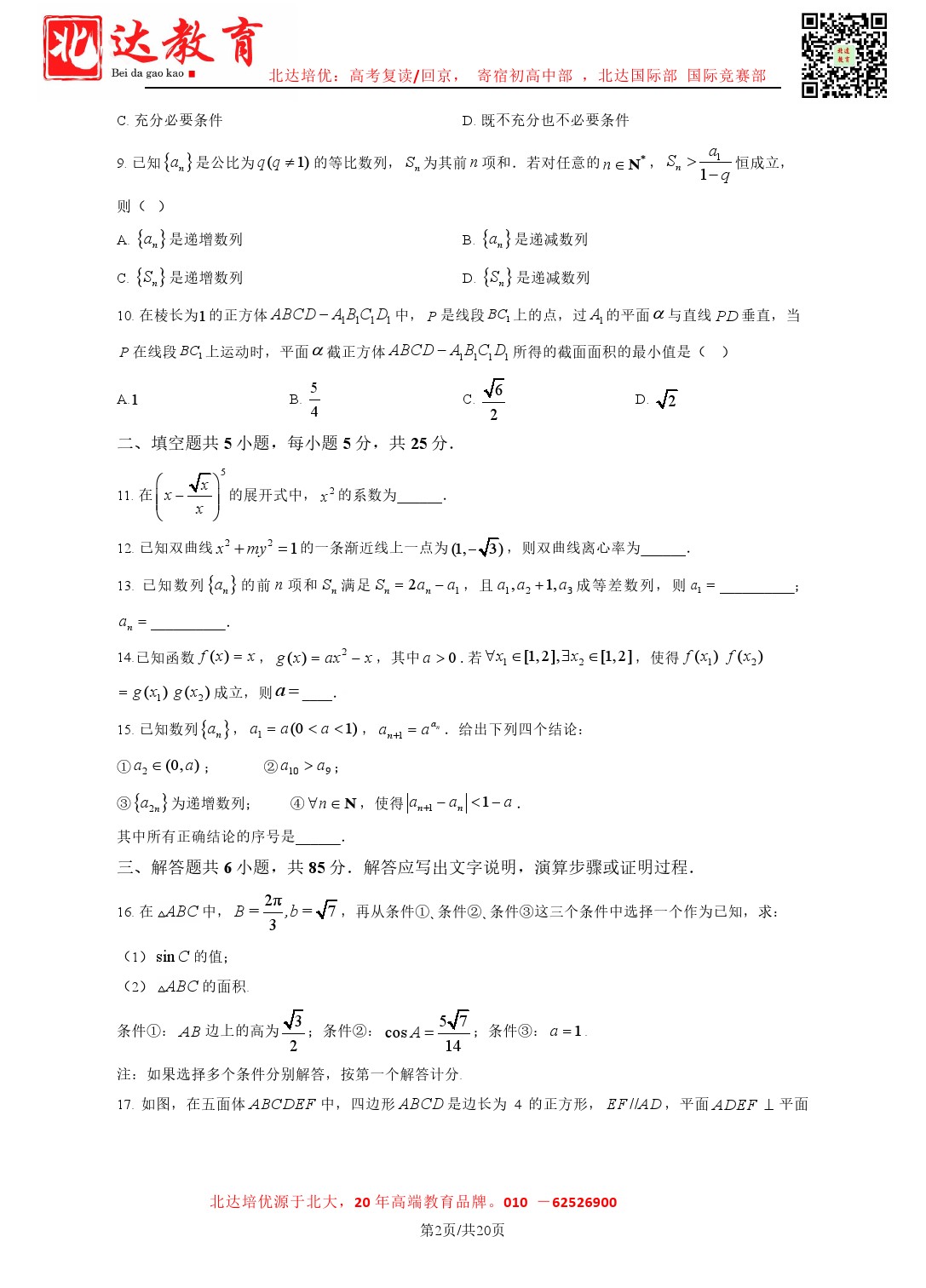 2024北京各中学高三开学考已结束,为了方便同学们查找相关试题,admw360高考网特意整理了2024北京理工大附中高三下开学考数学试题及答案,需要的同学赶紧下载练习吧。