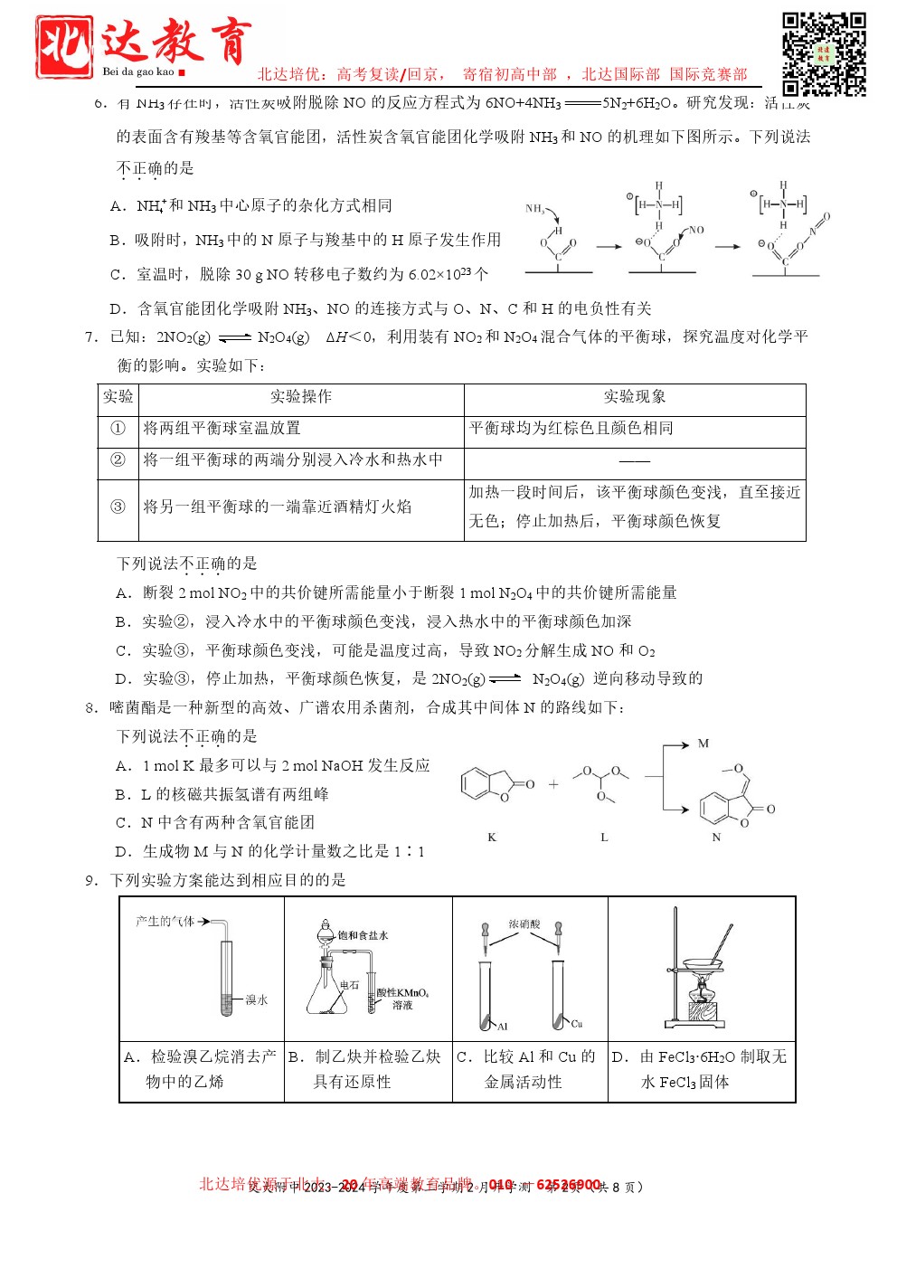 2024北京各中学高三开学考已结束,为了方便同学们查找相关试题,admw360高考网特意整理了2024北京交大附中高三下开学考化学试题及答案,需要的同学赶紧下载练习吧。