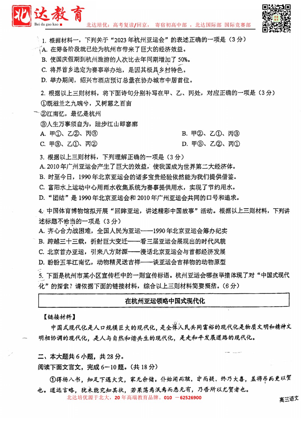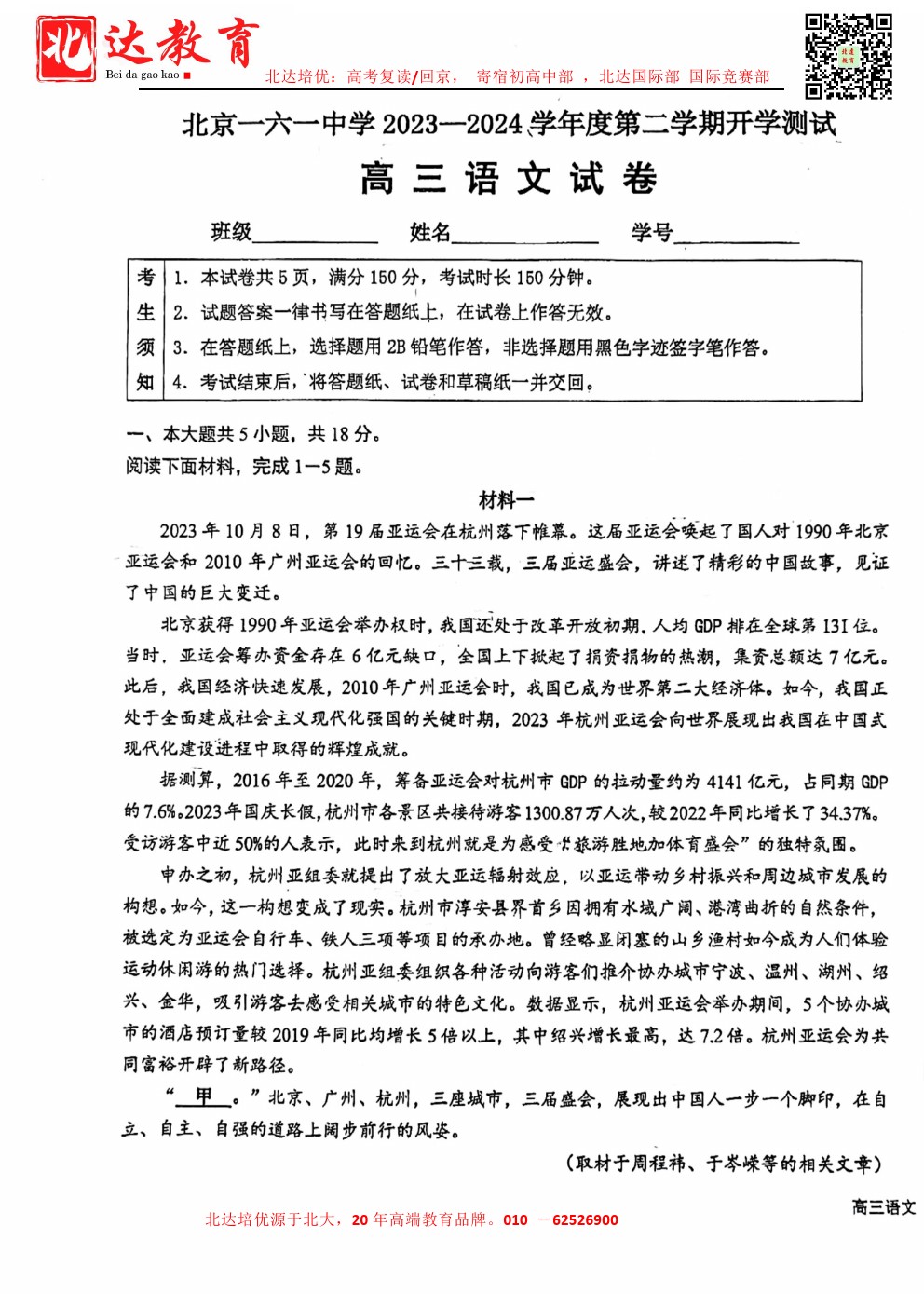 2024北京各中学高三开学考已结束,为了方便同学们查找相关试题,admw360高考网特意整理了2023-2024北京第一六一中学高三下开学考语文试题,需要的同学赶紧下载练习吧。