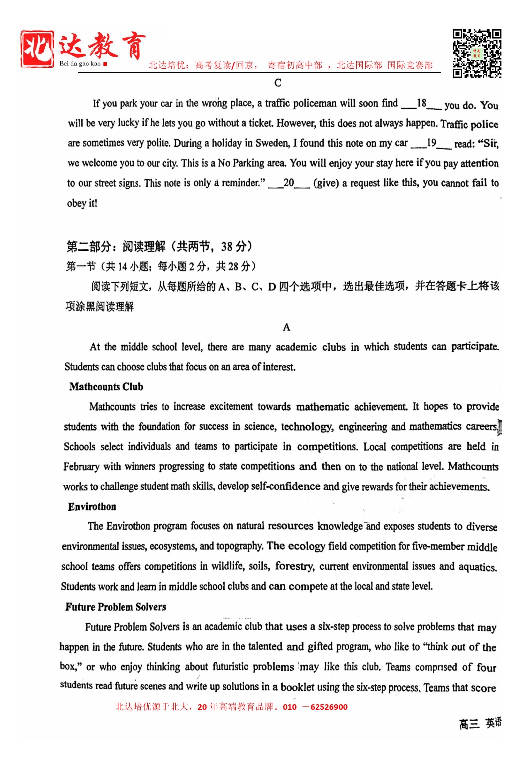 2024北京各中学高三开学考已结束,为了方便同学们查找相关试题,admw360高考网特意整理了2024北京第一六一中学高三下开学考英语试题,需要的同学赶紧下载练习吧。