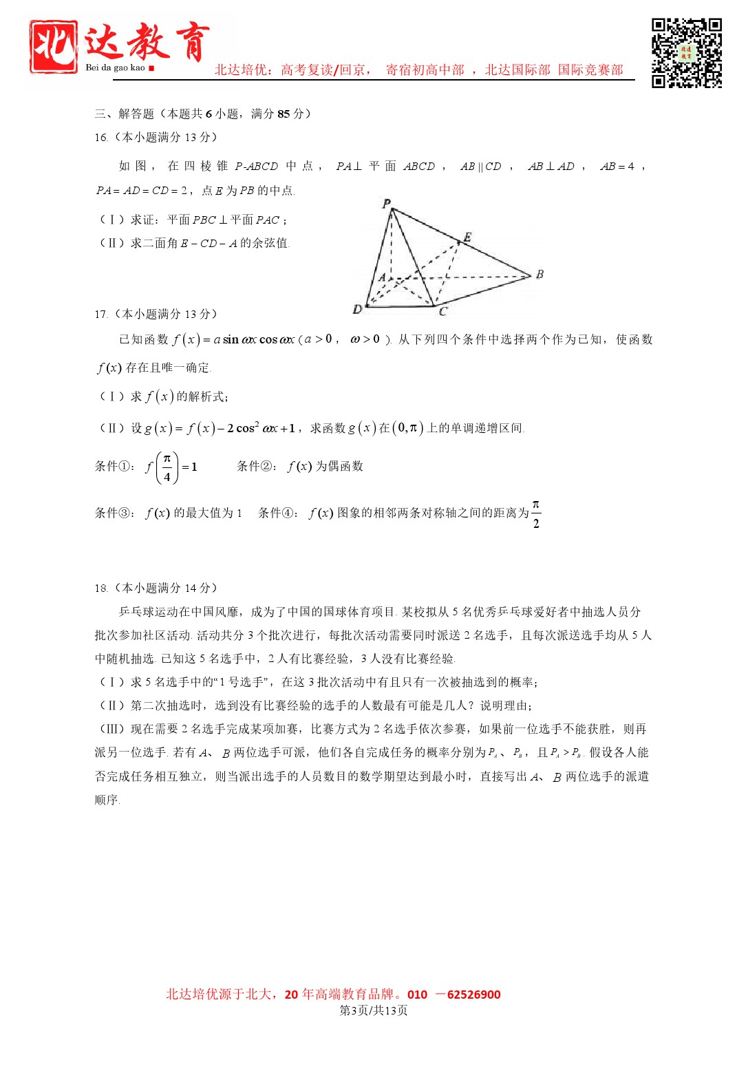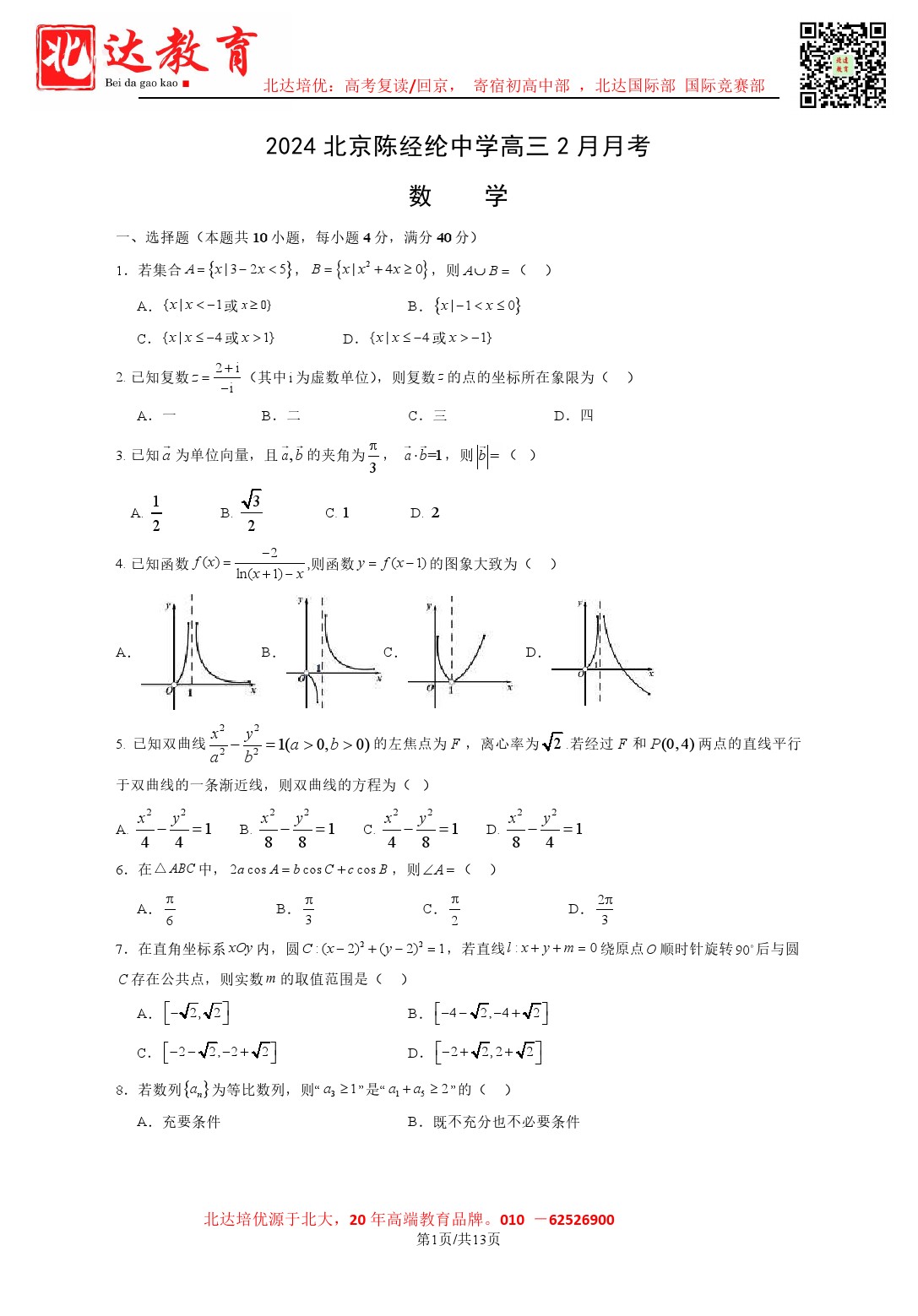 2024北京各中学高三开学考已结束,为了方便同学们查找相关试题,admw360高考网特意整理了2024北京陈经纶中学高三下开学考数学试题及答案,需要的同学赶紧下载练习吧。