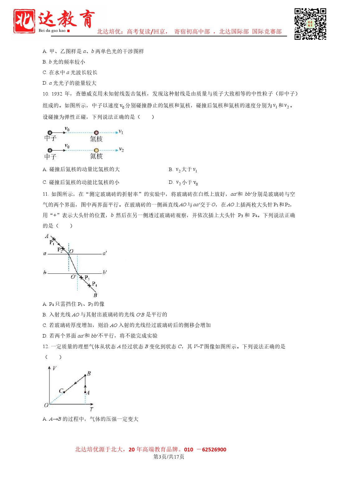 2024北京各中学高三开学考已结束,为了方便同学们查找相关试题,admw360高考网特意整理了2023-2024北京北师大附中高三下开学考物理试题及答案,需要的同学赶紧下载练习吧。