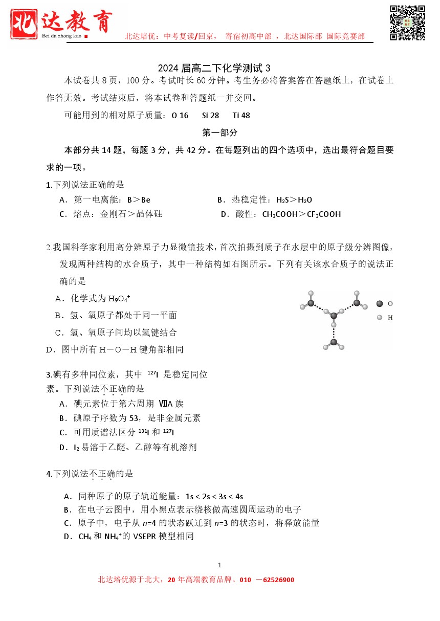 2024北京各中学高二开学考已结束,为了方便同学们查找相关试题,admw360高考网特意整理了2023-2024北师大附中高三下开学考数学试题及答案,需要的同学赶紧下载练习吧。