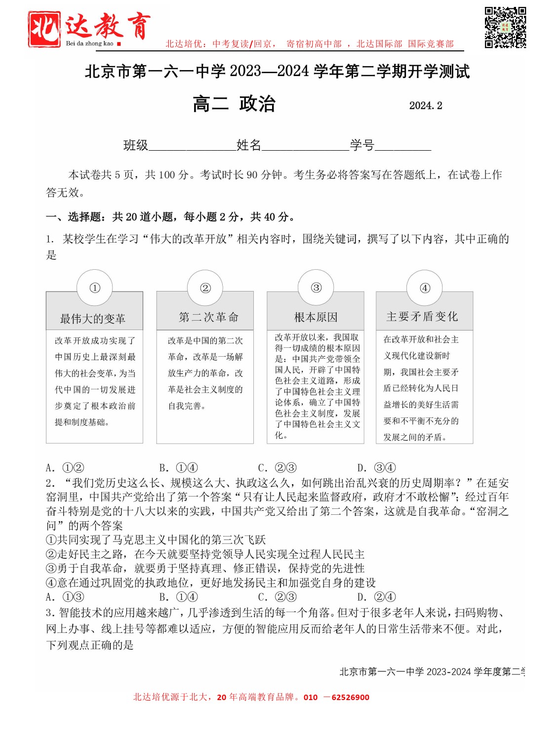 2024北京各中学高二开学考已结束,为了方便同学们查找相关试题,admw360高考网特意整理了2023-2024学年北京一六一中高二下开学考政治试题及答案,需要的同学赶紧下载练习吧。