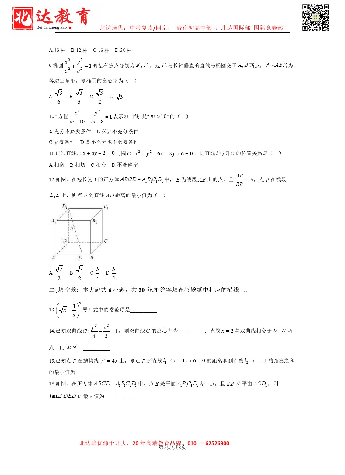 2024北京各中学高二开学考已结束,为了方便同学们查找相关试题,admw360高考网特意整理了2023-2024学年北京一六一中高二下开学考数学试题及答案,需要的同学赶紧下载练习吧。