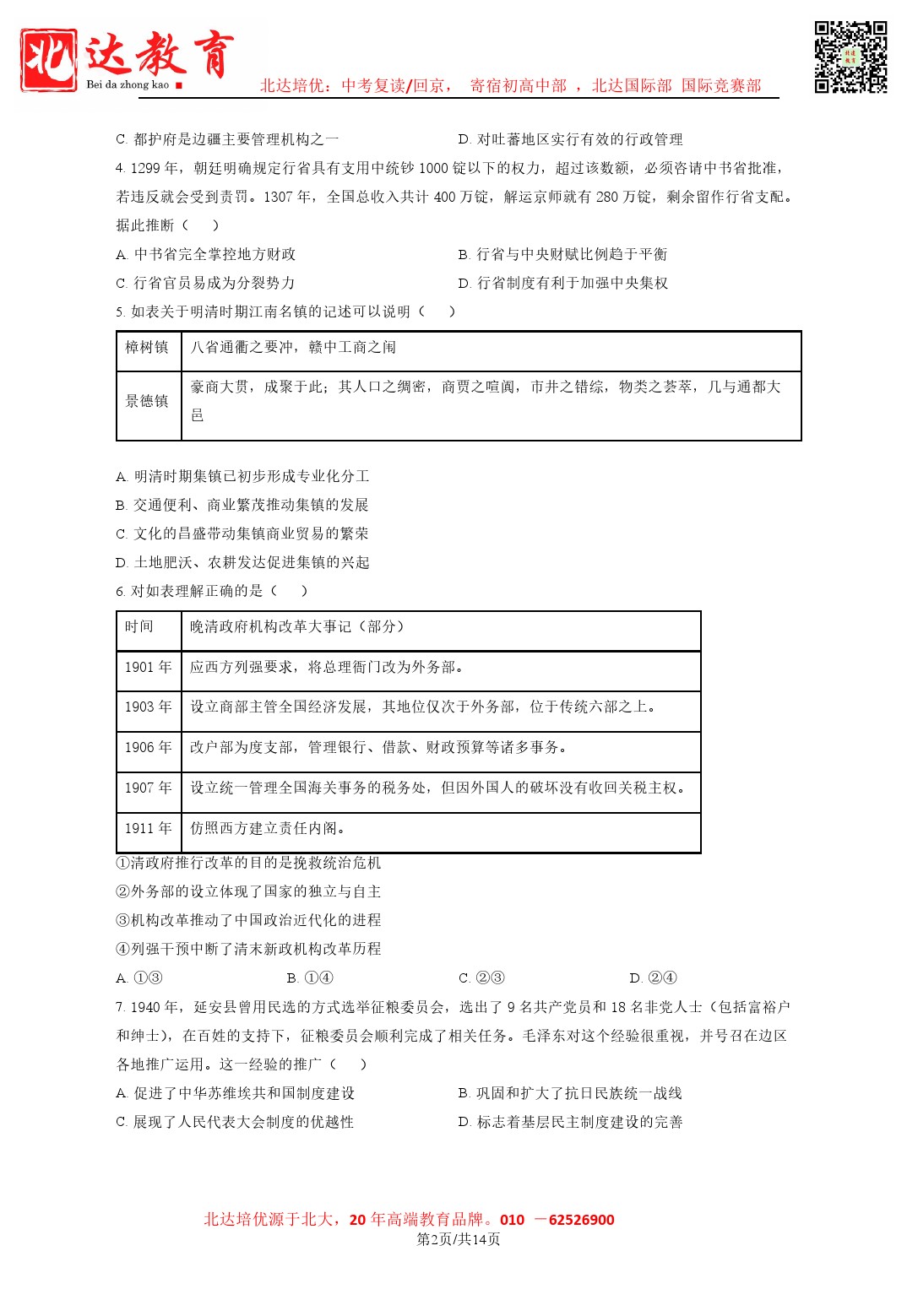 2024北京各中学高二开学考已结束,为了方便同学们查找相关试题,admw360高考网特意整理了2023-2024学年北京一六一中高二下开学考历史试题及答案,需要的同学赶紧下载练习吧。
