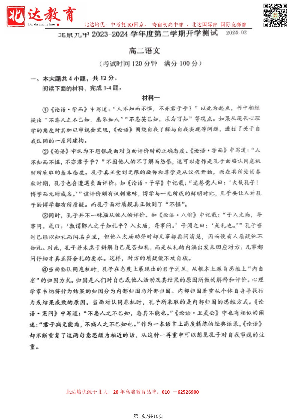 2024北京各中学高二开学考已结束,为了方便同学们查找相关试题,admw360高考网特意整理了2023-2024学年北京九中高二下开学考语文试题,需要的同学赶紧下载练习吧。