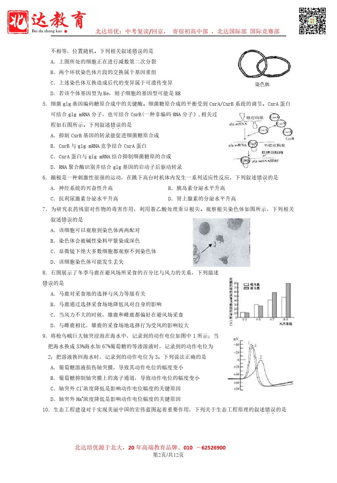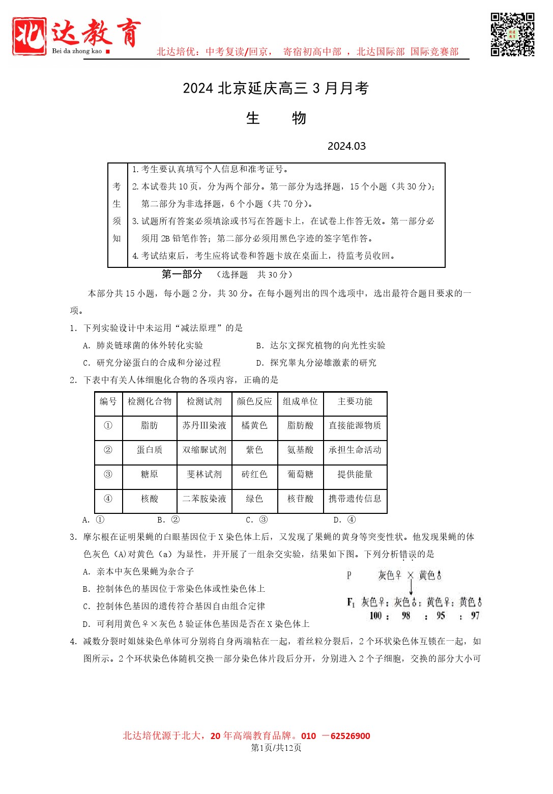 admw360教育整理了2024年3月北京延庆区高三月考生物试题及答案解析,分享给同学们。