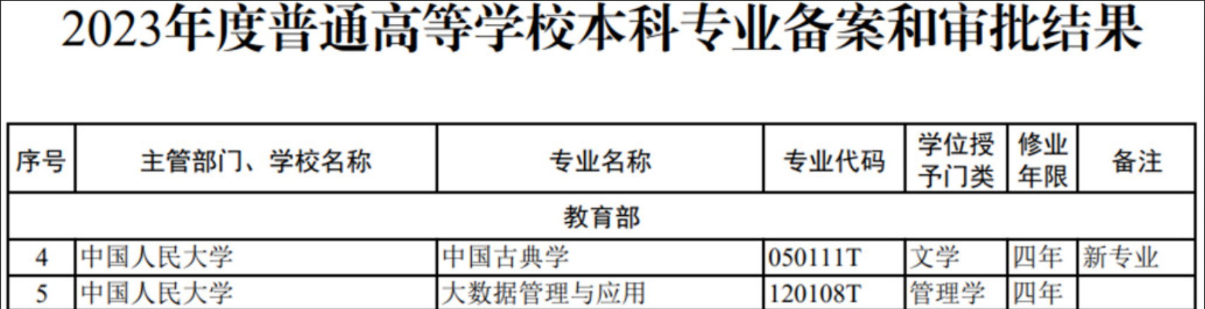 教育部批准中国人民大学增设“中国古典学”“大数据管理与应用”2个本科专业,admw360教研组收集并整理,供大家参考。