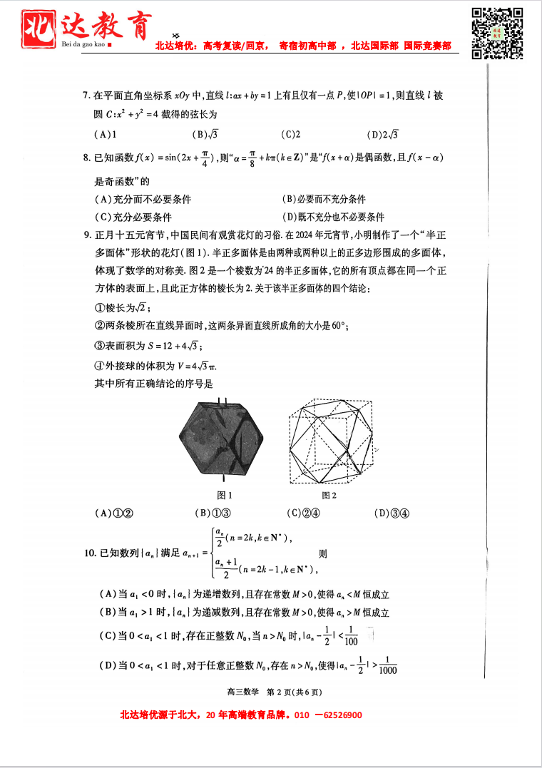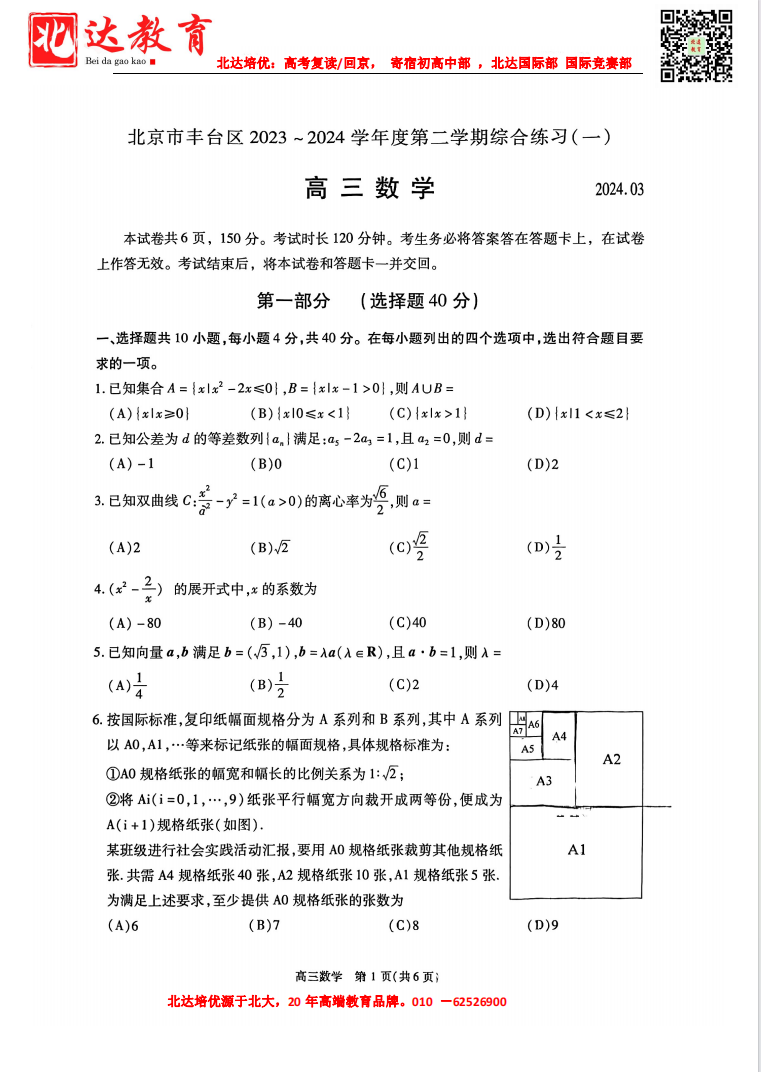 2024年北京丰台区高三一模开考,admw360教研组收集并整理了2024北京丰台高三一模数学试题,分享给同学们。