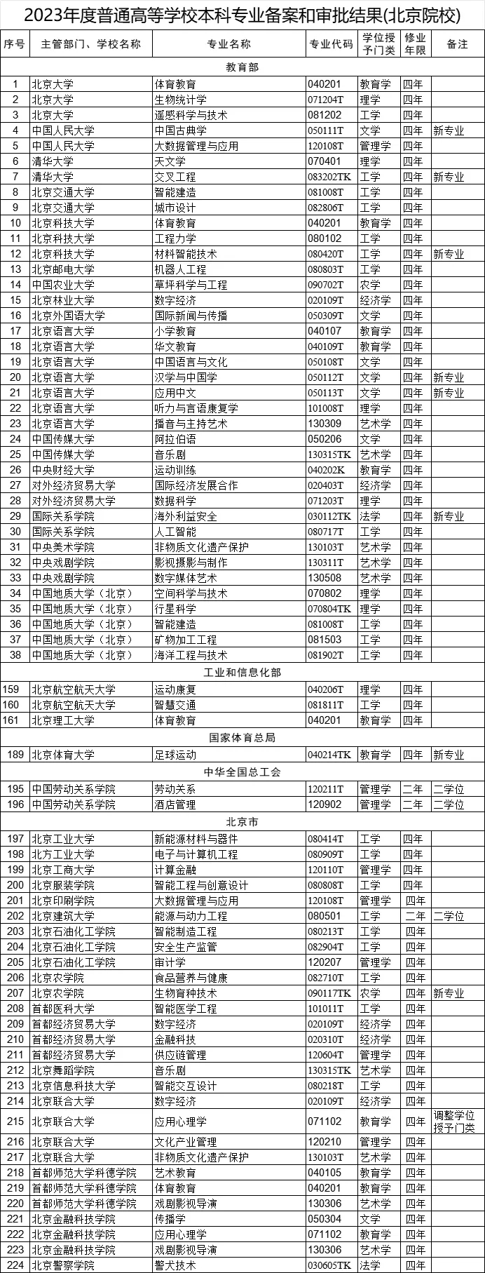 教育部发布《关于公布2023年度普通高等学校本科专业备案和审批结果的通知》,北京很多院校发布新增专业信息和招生时间,admw360教研组收集并整理了相关信息,供大家参考。