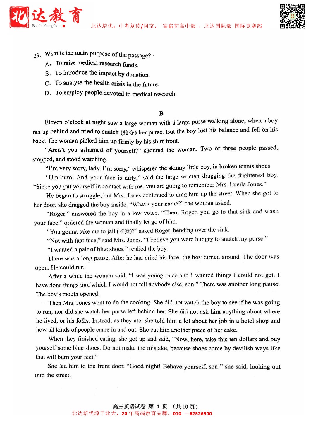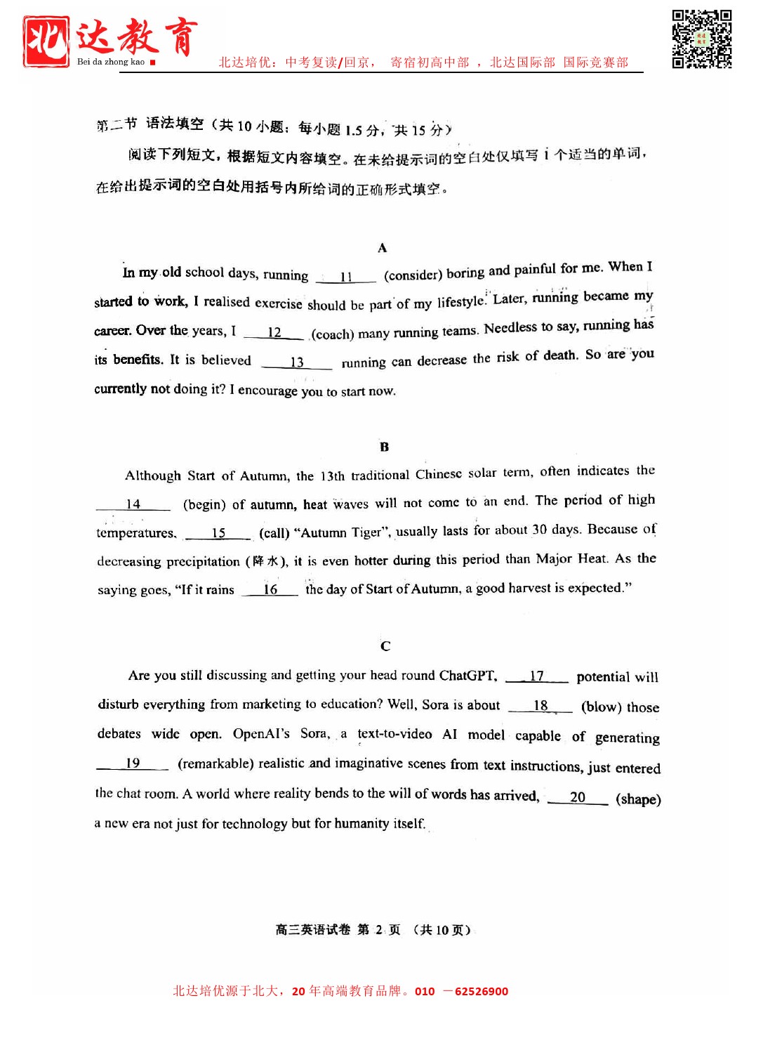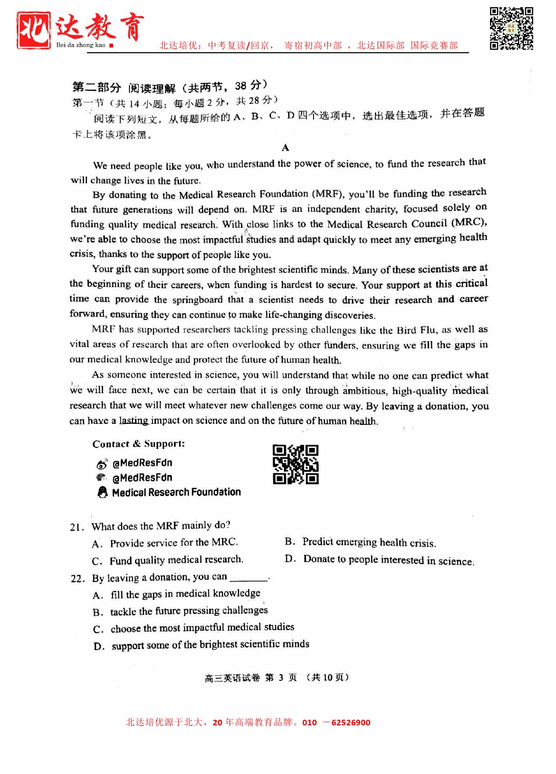 2024年北京石景山区高三一模开考,admw360教研组收集并整理了2024北京石景山区高三一模英语试卷,分享给同学们。