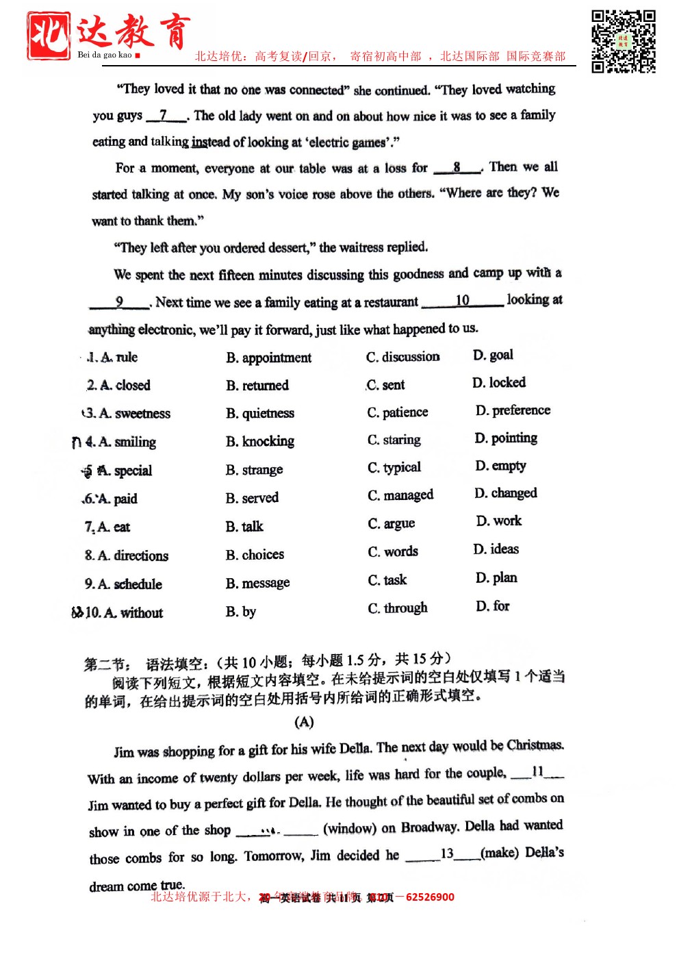 今天admw360教研组为大家带来的是2024北京顺义一中高一(下)3月考英语试卷及答案。需要的同学赶紧下载练习起来吧。