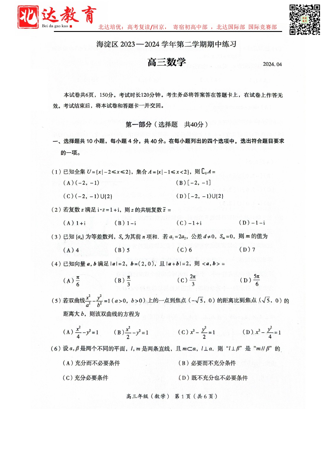 2024年北京海淀区区高三一模开考了,admw360教研组收集并整理了2024北京海淀区高三一模数学试卷及答案,分享给同学们。