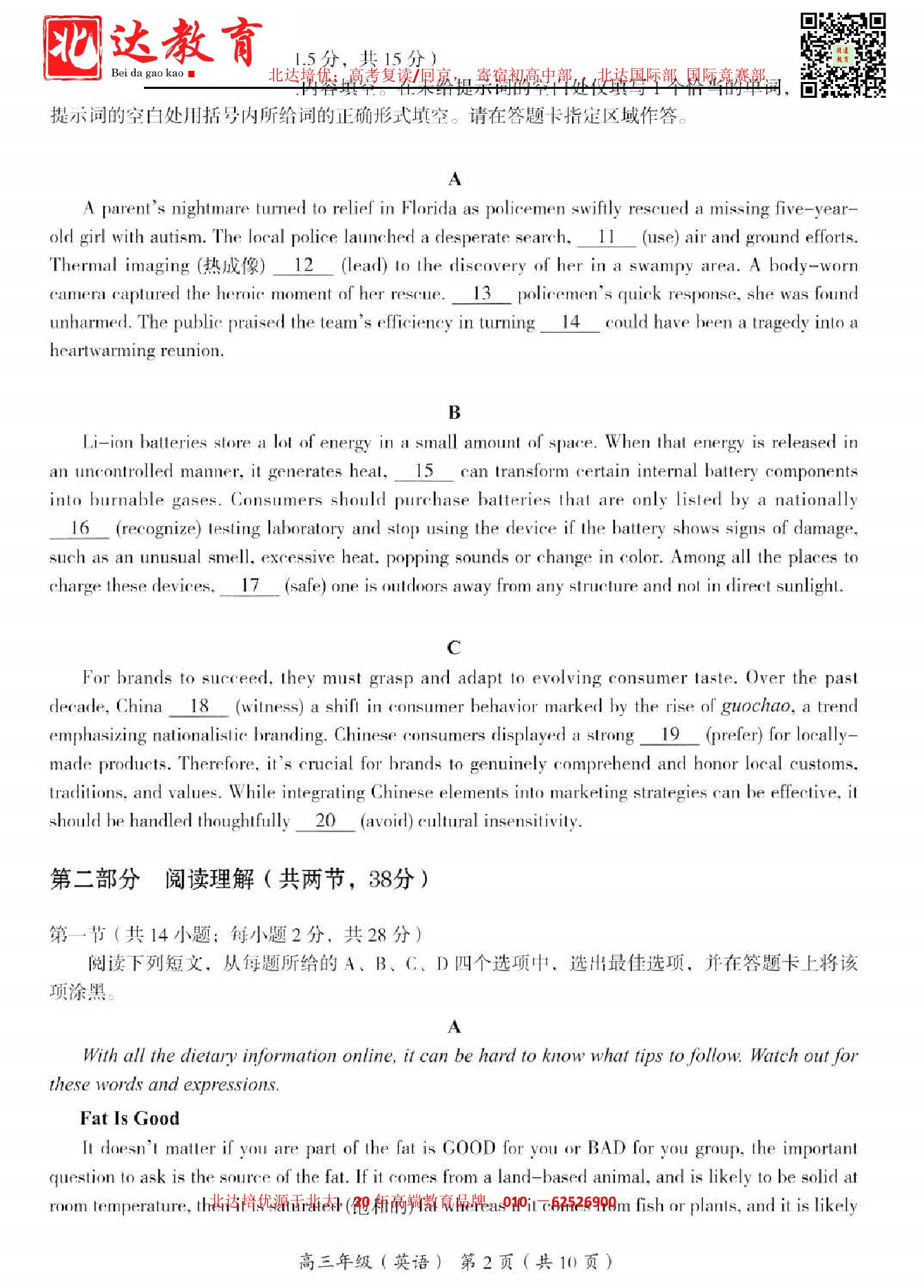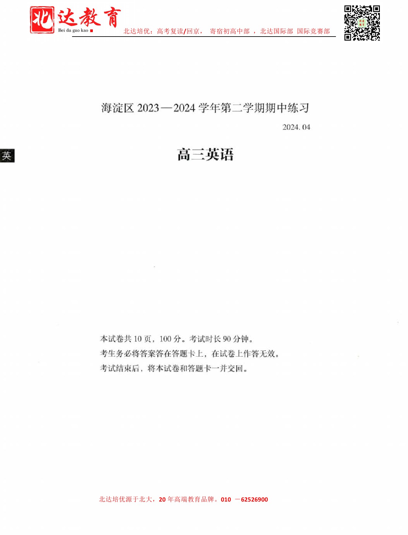 2024年北京海淀区区高三一模开考了,admw360教研组收集并整理了2024北京海淀区高三一模英语试卷及答案,分享给同学们。