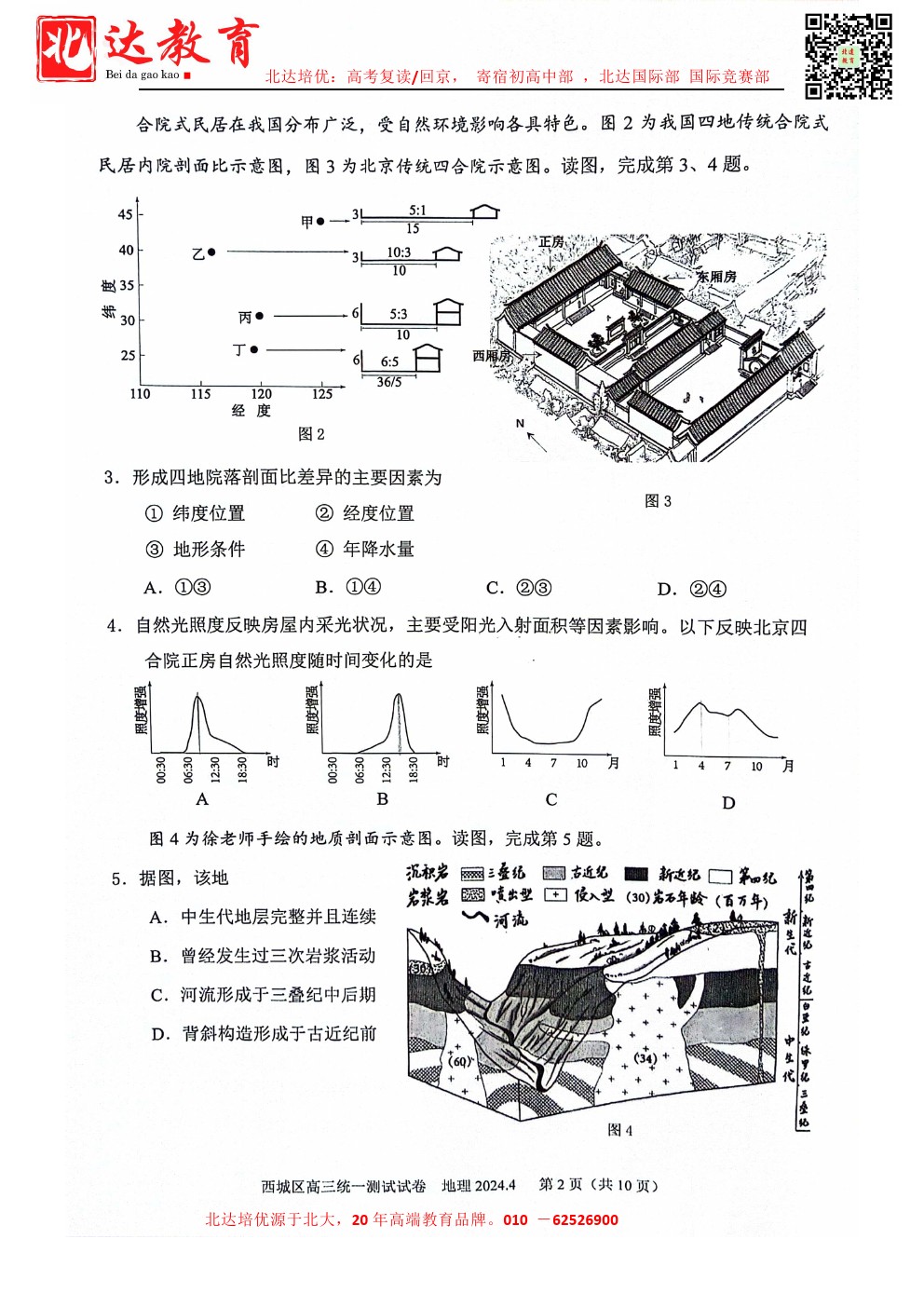 2024年北京西城区高三一模4月7日开考,admw360教研组收集并整理了2024北京西城区高三一模地理试卷及答案,分享给同学们。