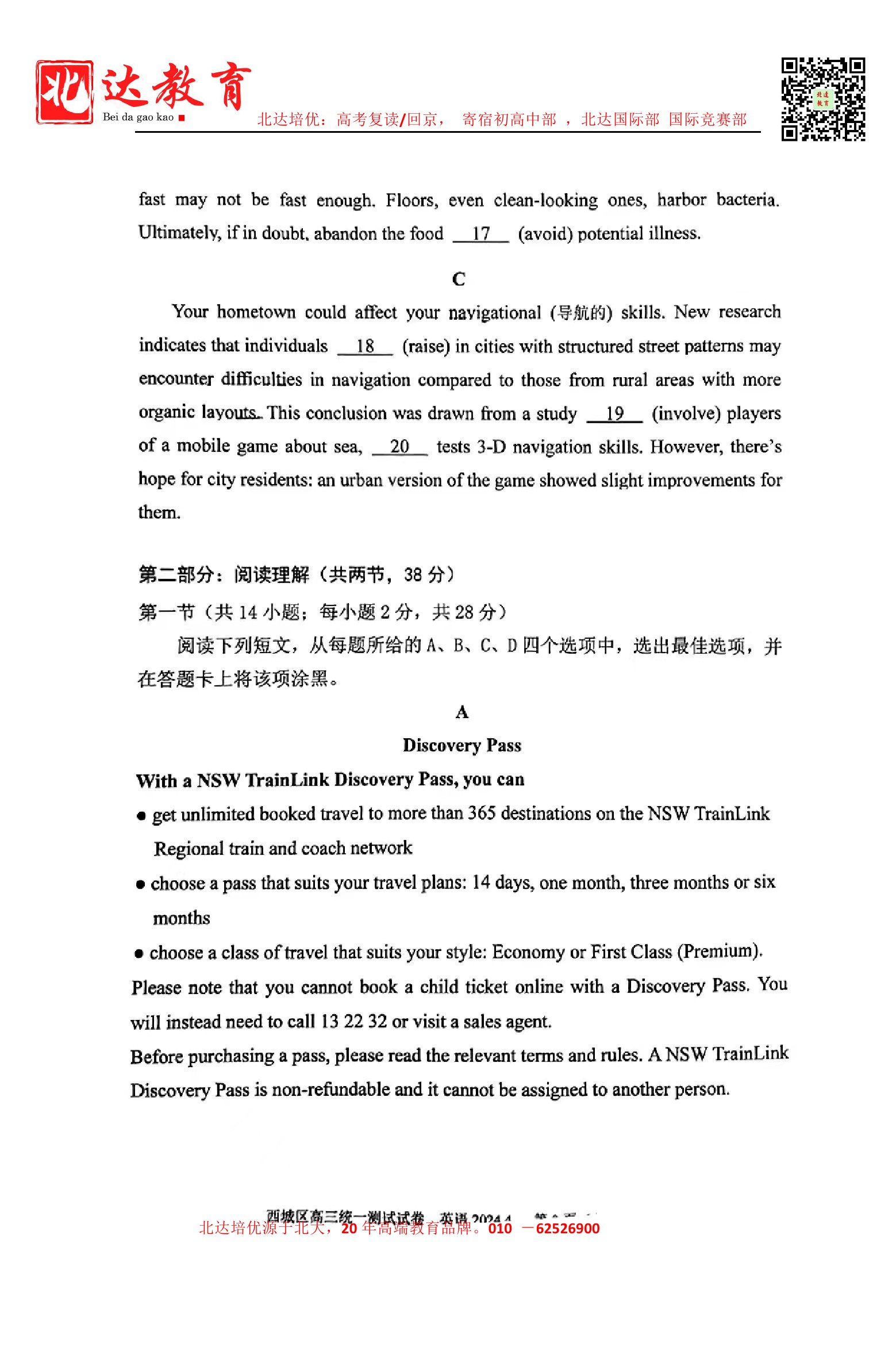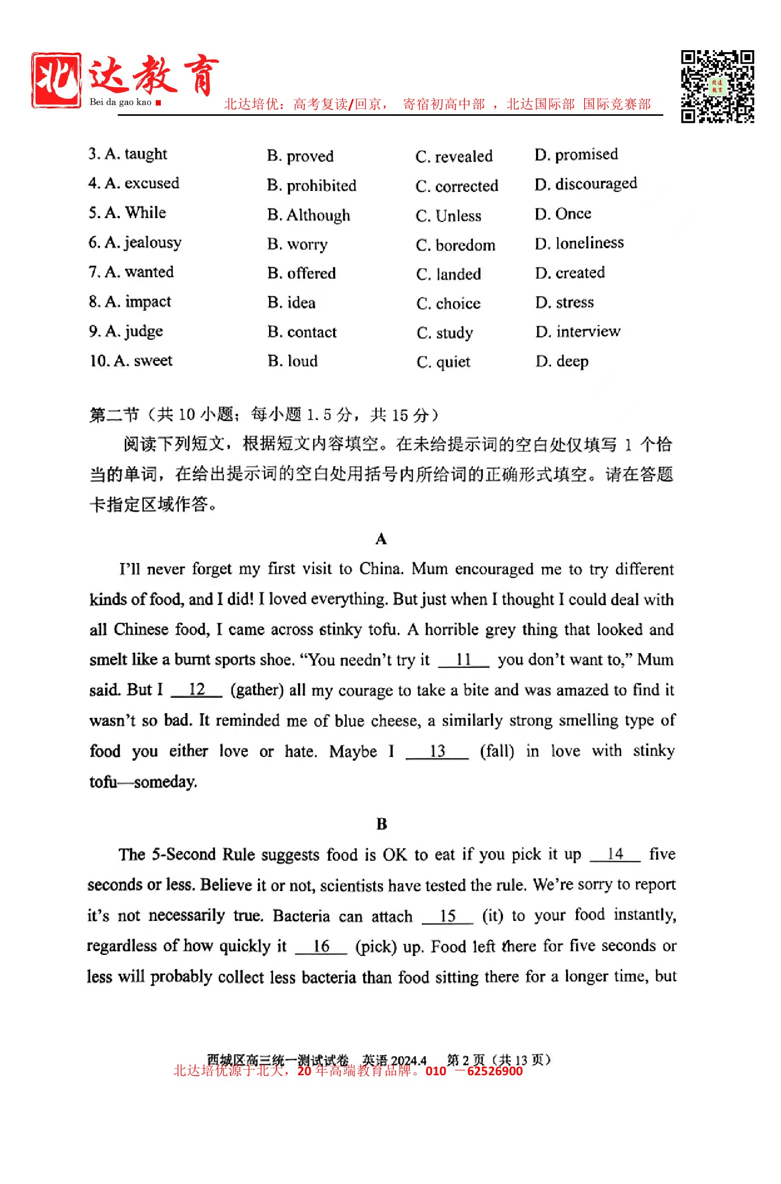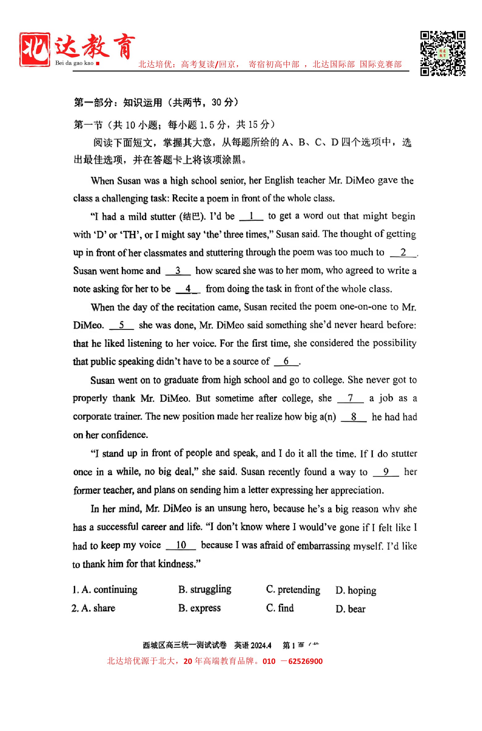 2024年北京西城区高三一模4月7日开考,admw360教研组收集并整理了2024北京西城区高三一模英语试卷及答案,分享给同学们。 导读推荐:2024年北京各区高三一模汇总 北京admw360全日制学…