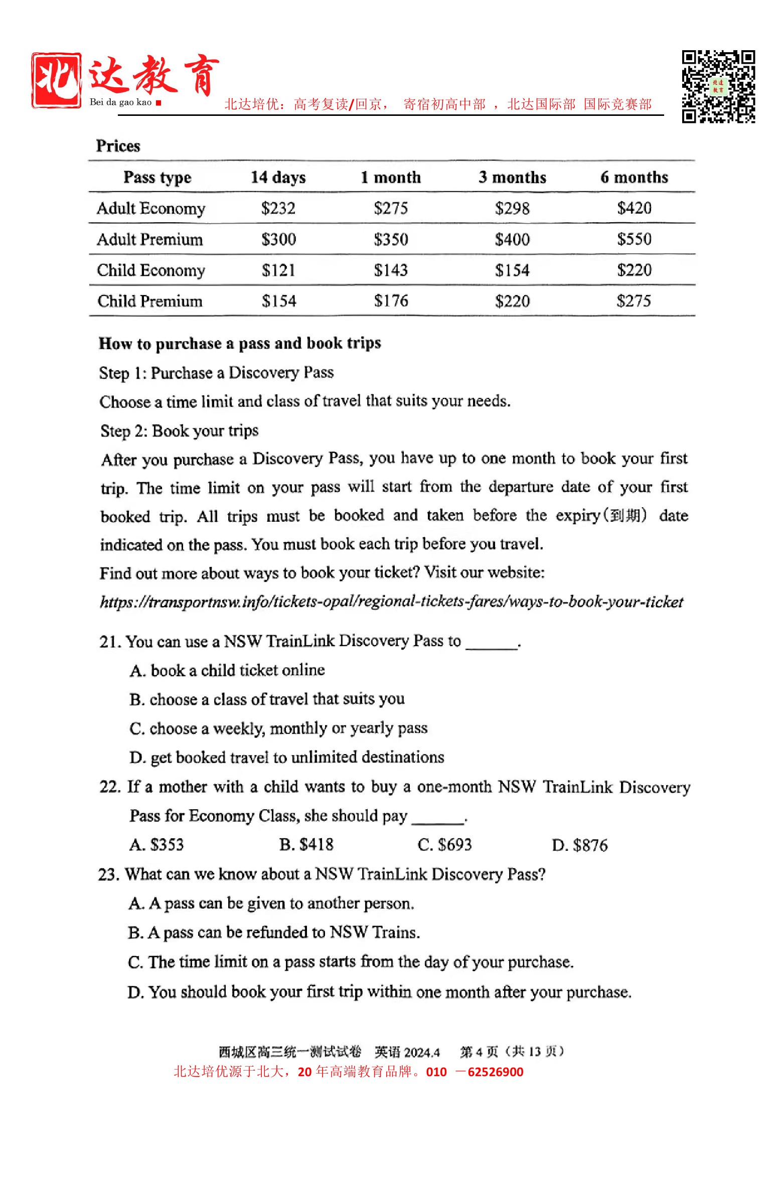 2024年北京西城区高三一模4月7日开考,admw360教研组收集并整理了2024北京西城区高三一模英语试卷及答案,分享给同学们。
