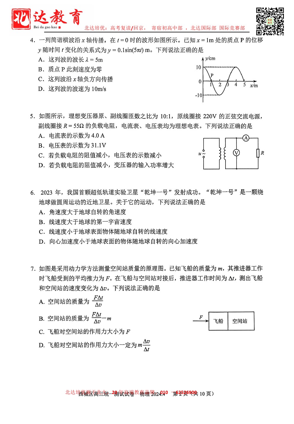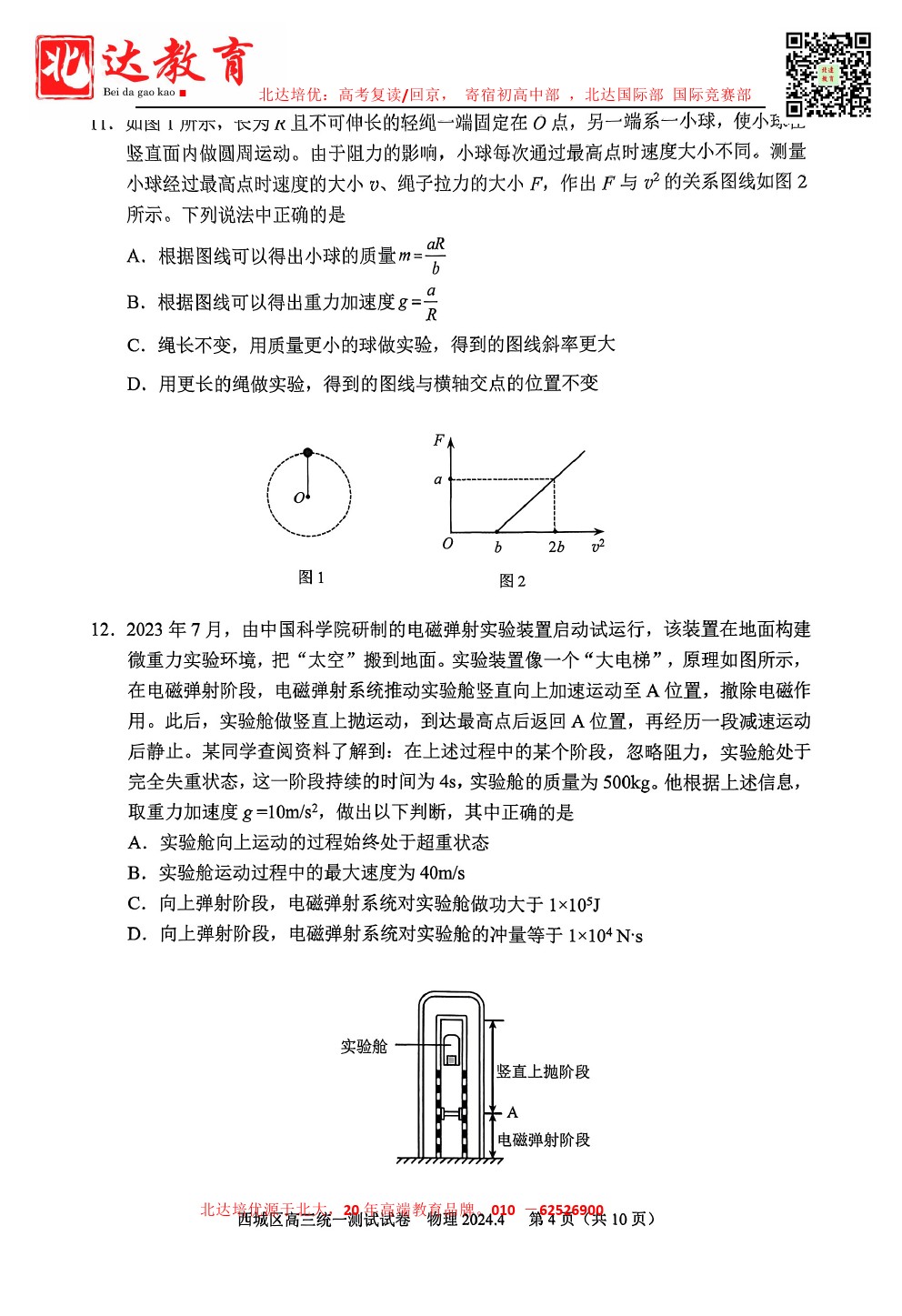 2024年北京西城区高三一模4月7日开考,admw360教研组收集并整理了2024北京西城区高三一模物理试卷及答案,分享给同学们。