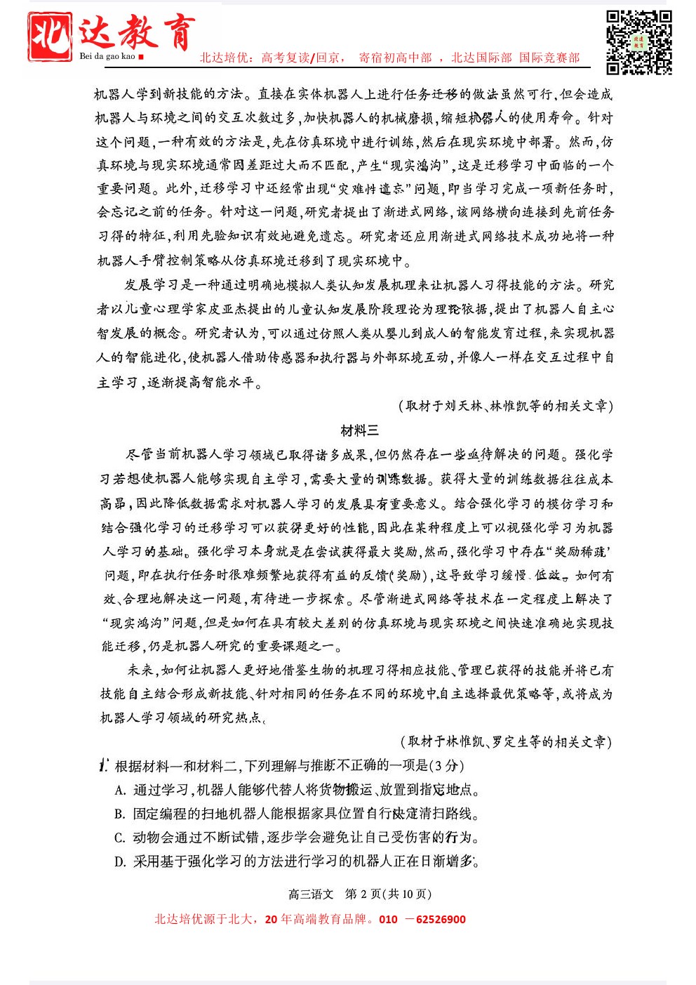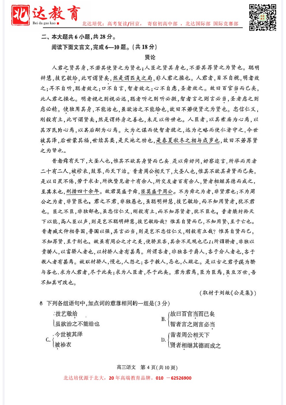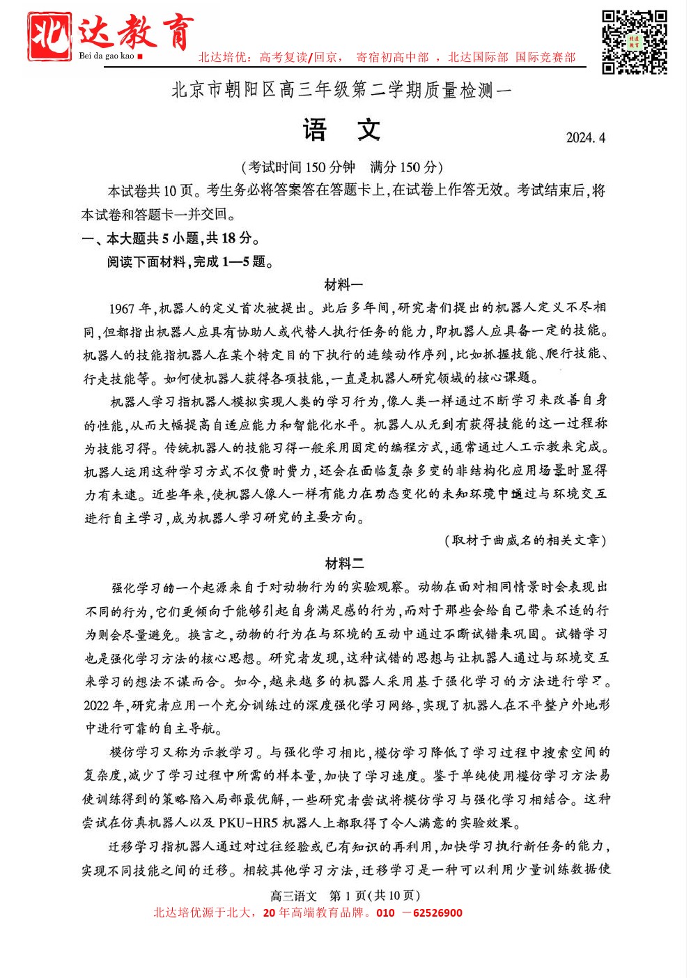2024年北京朝阳区高三一模4月7日开考,admw360教研组收集并整理了北京朝阳2024年高三一模语文试题及答案,分享给同学们。
