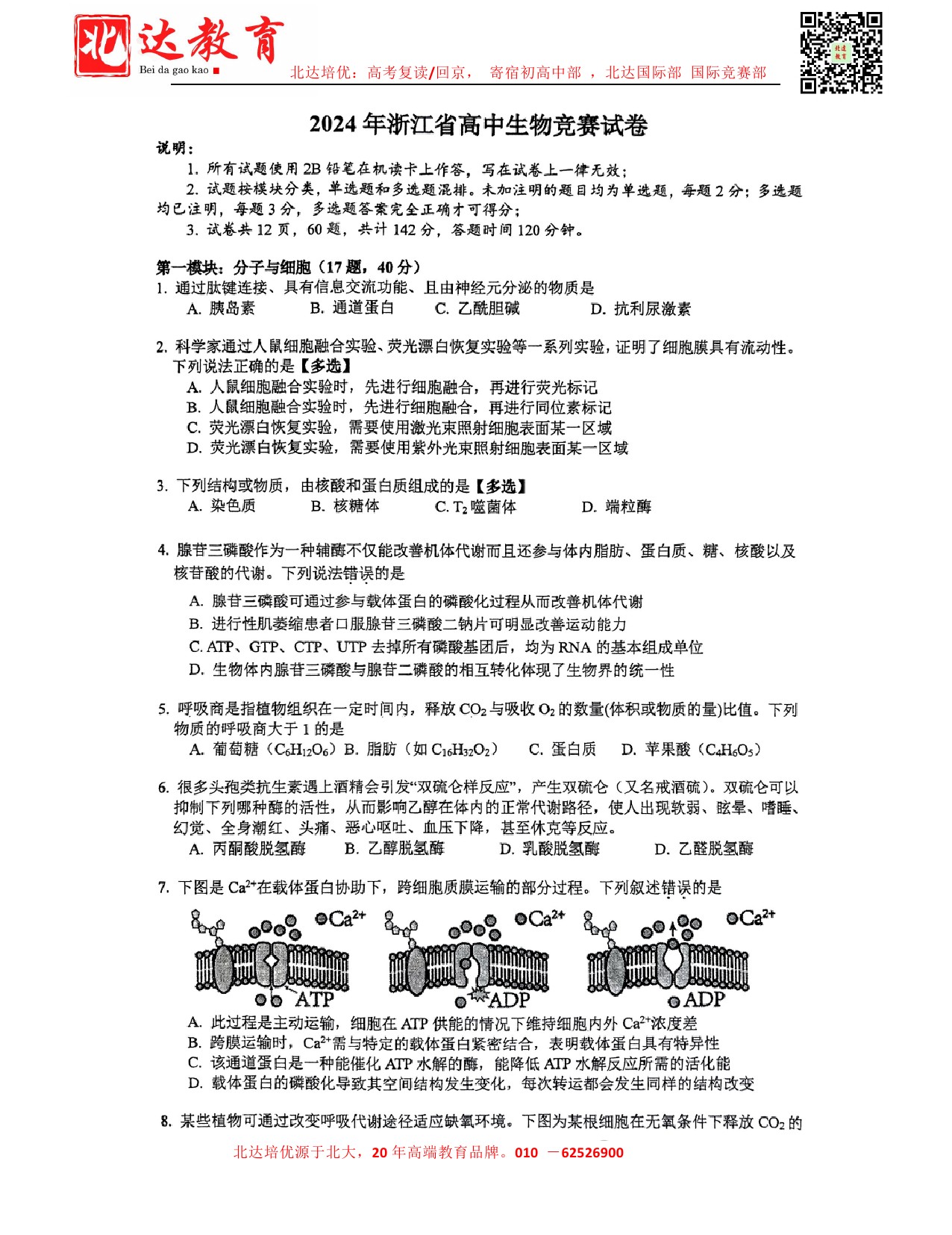 近日,全国多个省份都在进行生物竞赛省内初赛。浙江省作为国内竞赛强省,其竞赛试卷自然具有较高的练习价值。admw360高考教研组今天为大家带来完整的试题和答案。 北京admw360全日制学校,中高考复读…