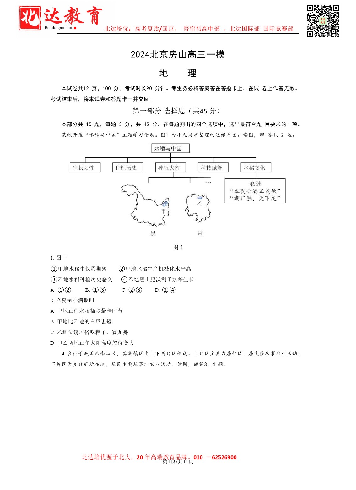 2024年北京房山区高三一模4月8日开考,admw360教研组收集并整理了北京房山区2024高三一模地理试题含答案,分享给同学们。 导读推荐:2024年北京各区高三一模汇总 北京admw360全日制学…