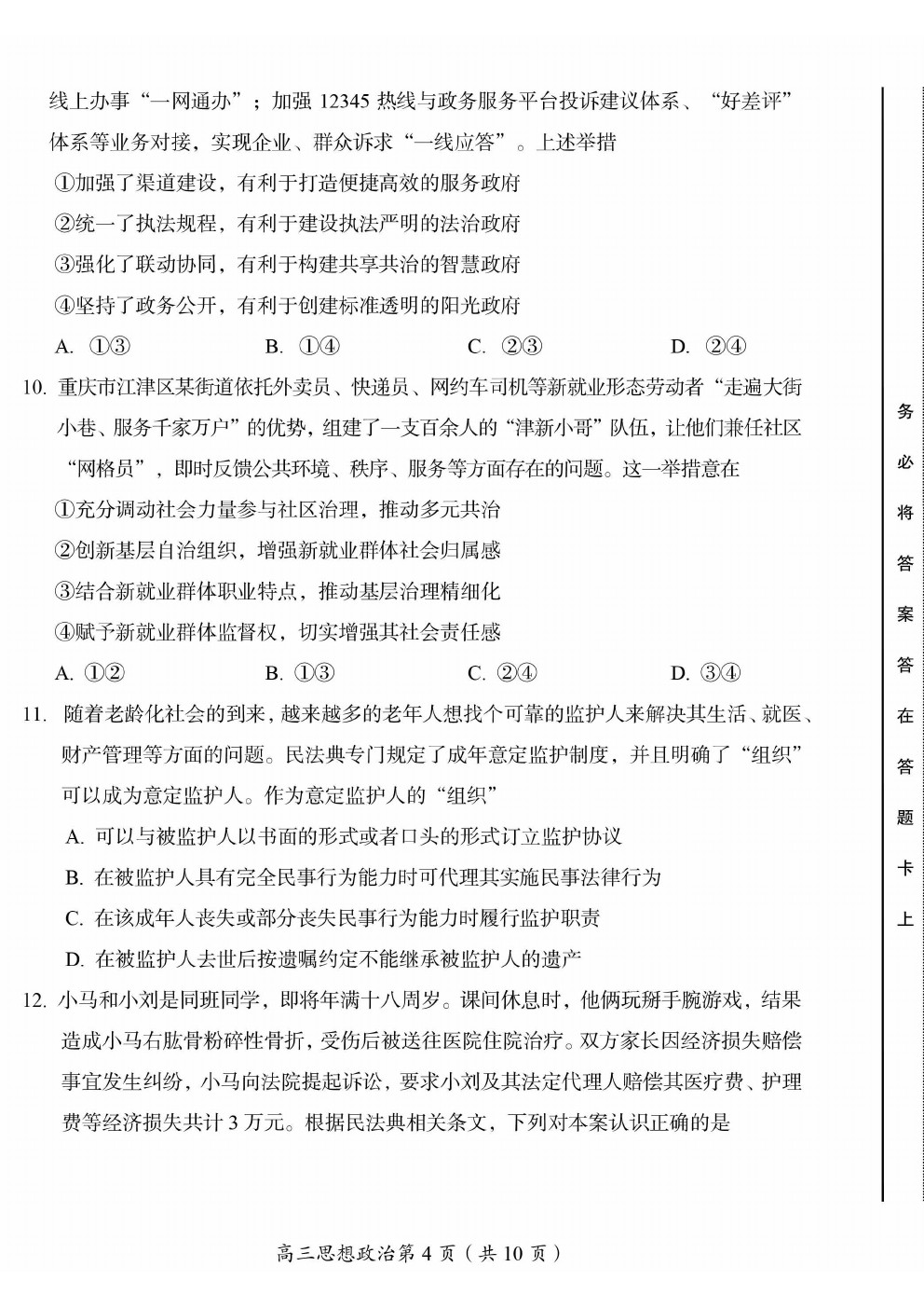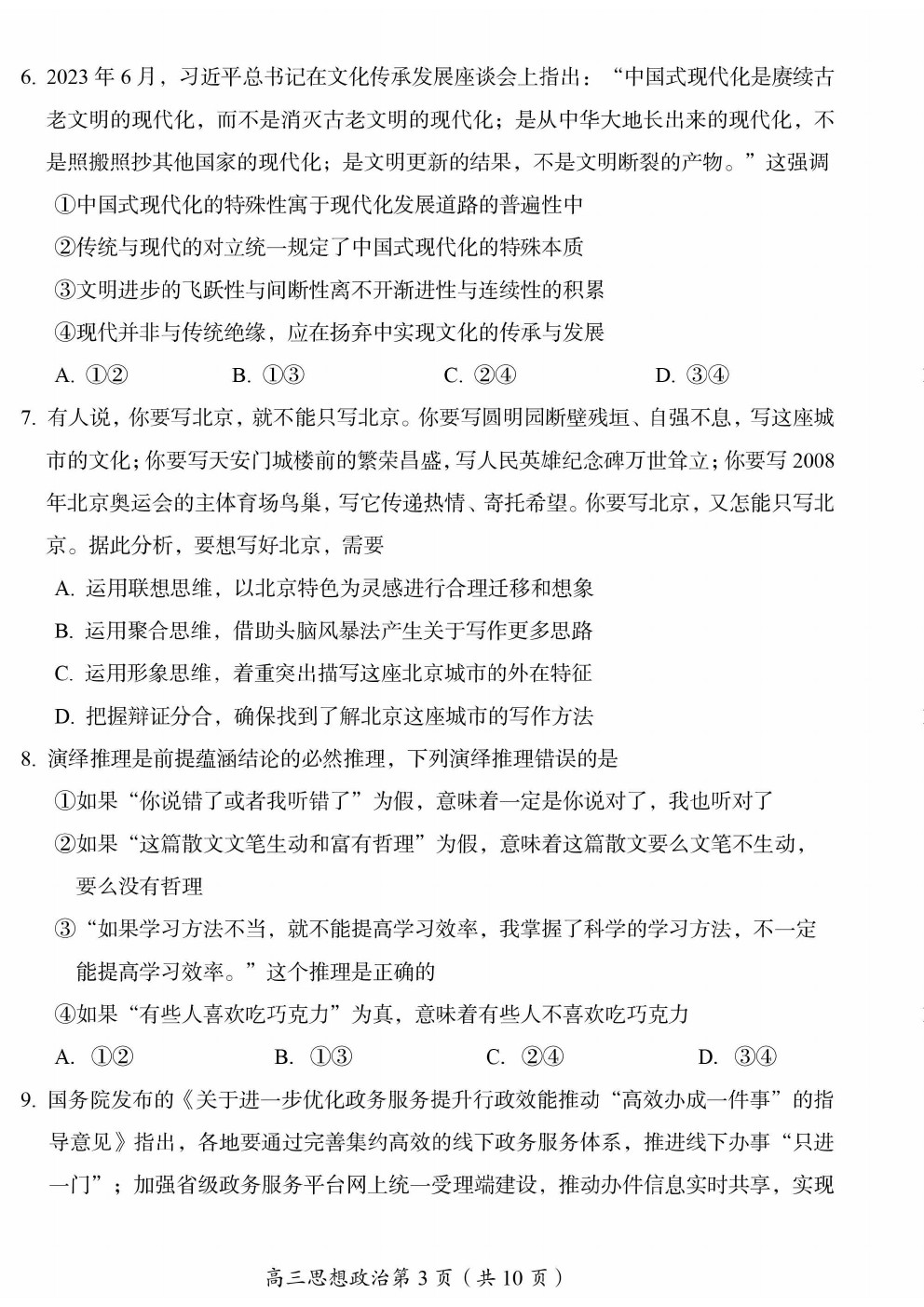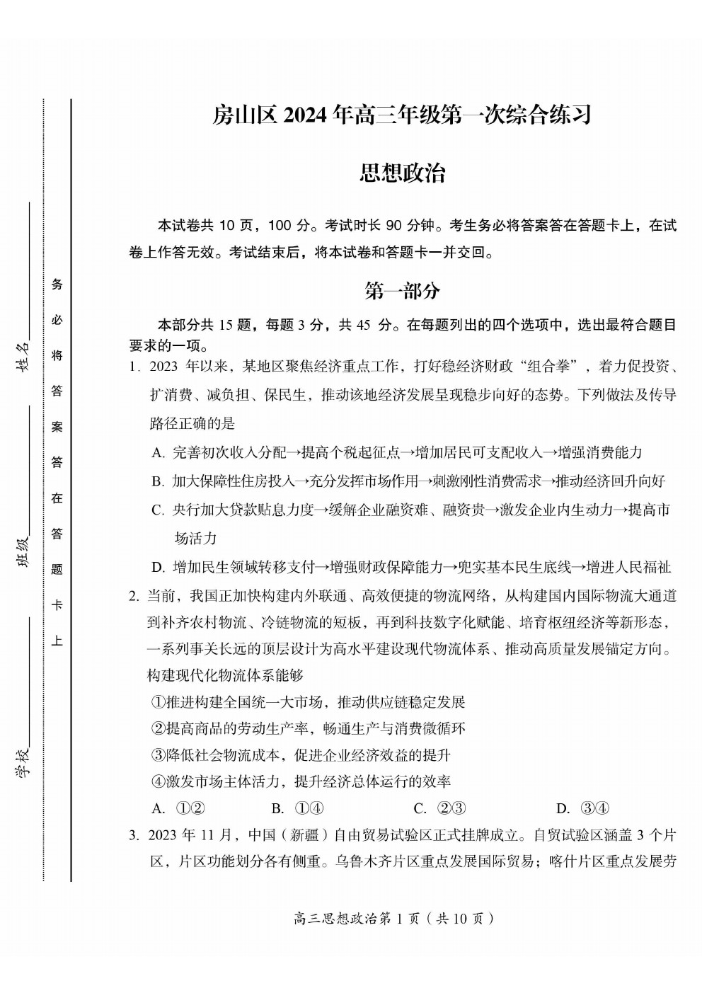 2024年北京房山区高三一模4月8日开考,admw360教研组收集并整理了北京房山区2024高三一模道法试题含答案,分享给同学们。