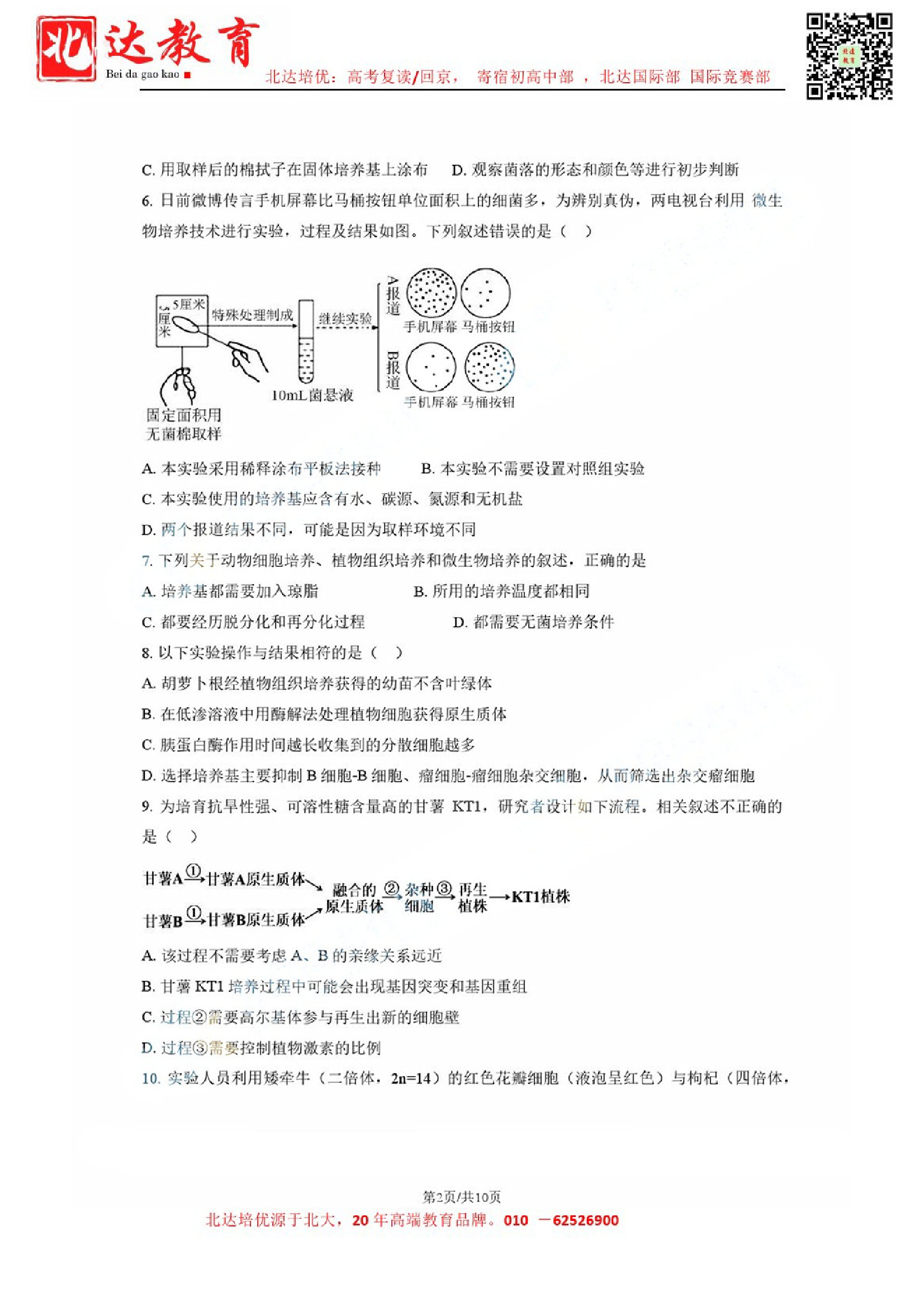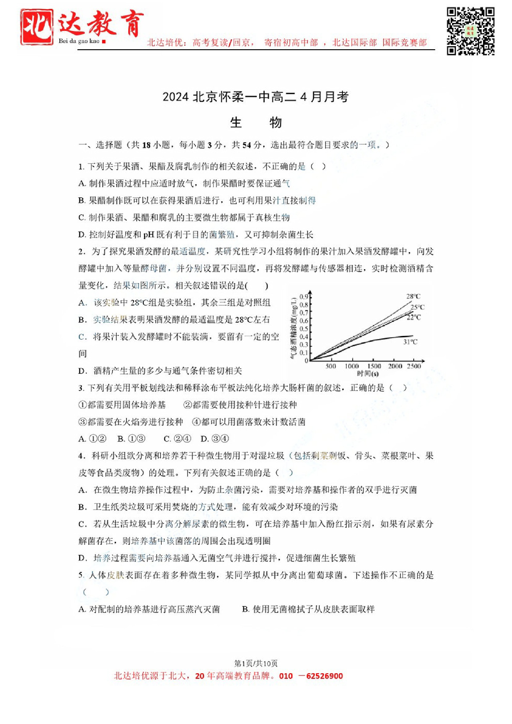 2024年北京各高中高二进行了4月月考测试,admw360教研组收集并整理了2024北京怀柔一中高二4月月考生物试卷及答案,分享给同学们。