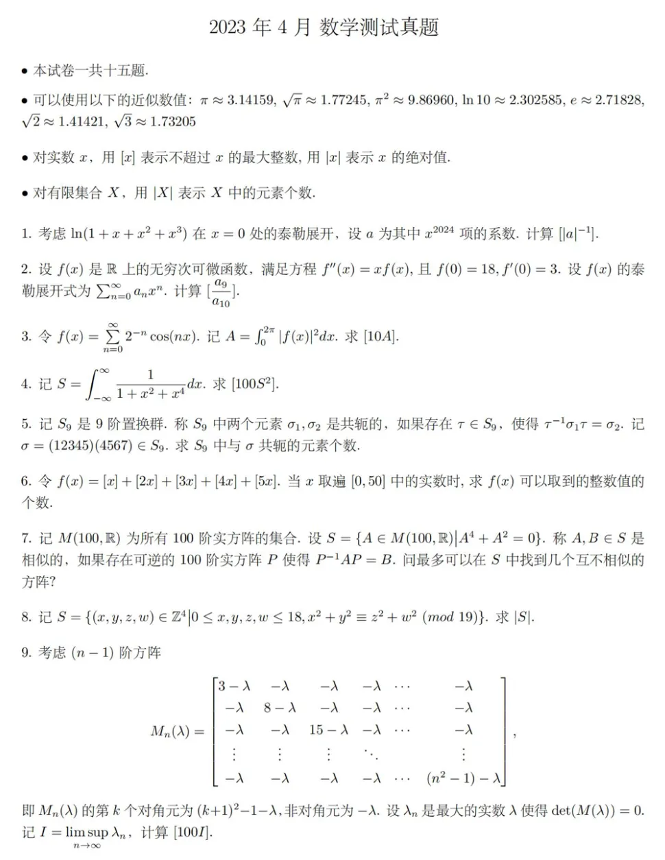 为了方便广大考生进一步了解本次考试的难度和方向,本通知另附2023年数学测试真题,供考生参考。