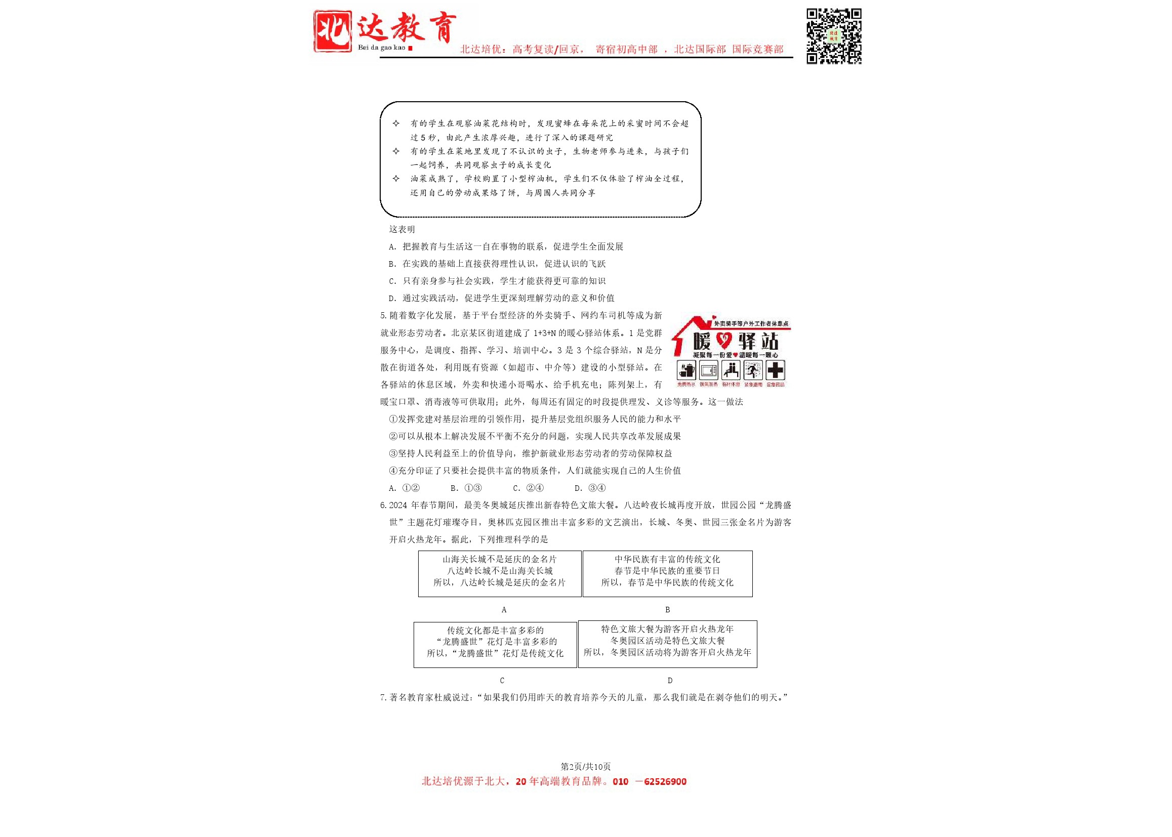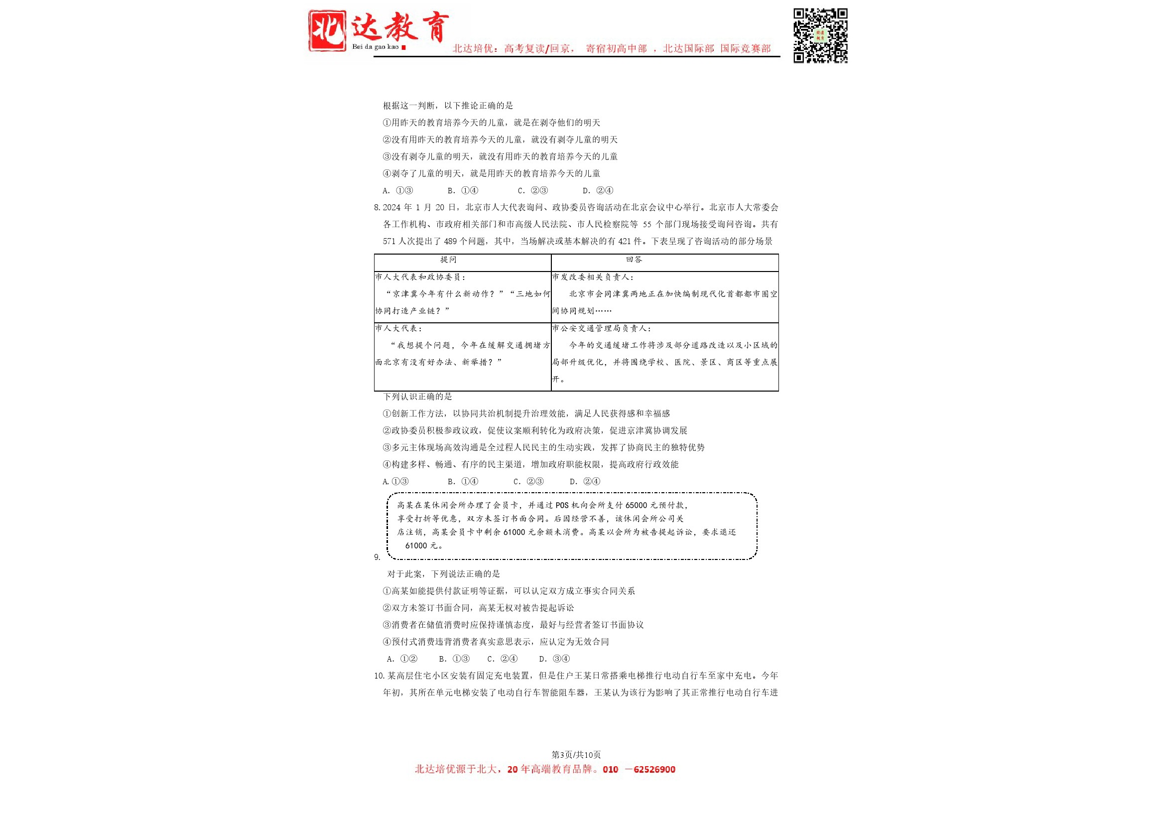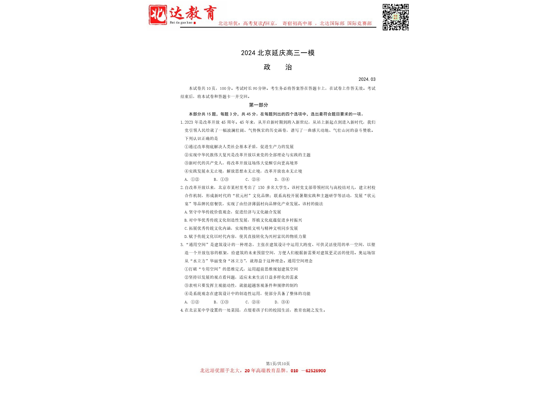 2024年北京延庆区高三一模率先开考,admw360教研组整理了2024北京延庆高三一模政治试题及答案,分享给同学们。