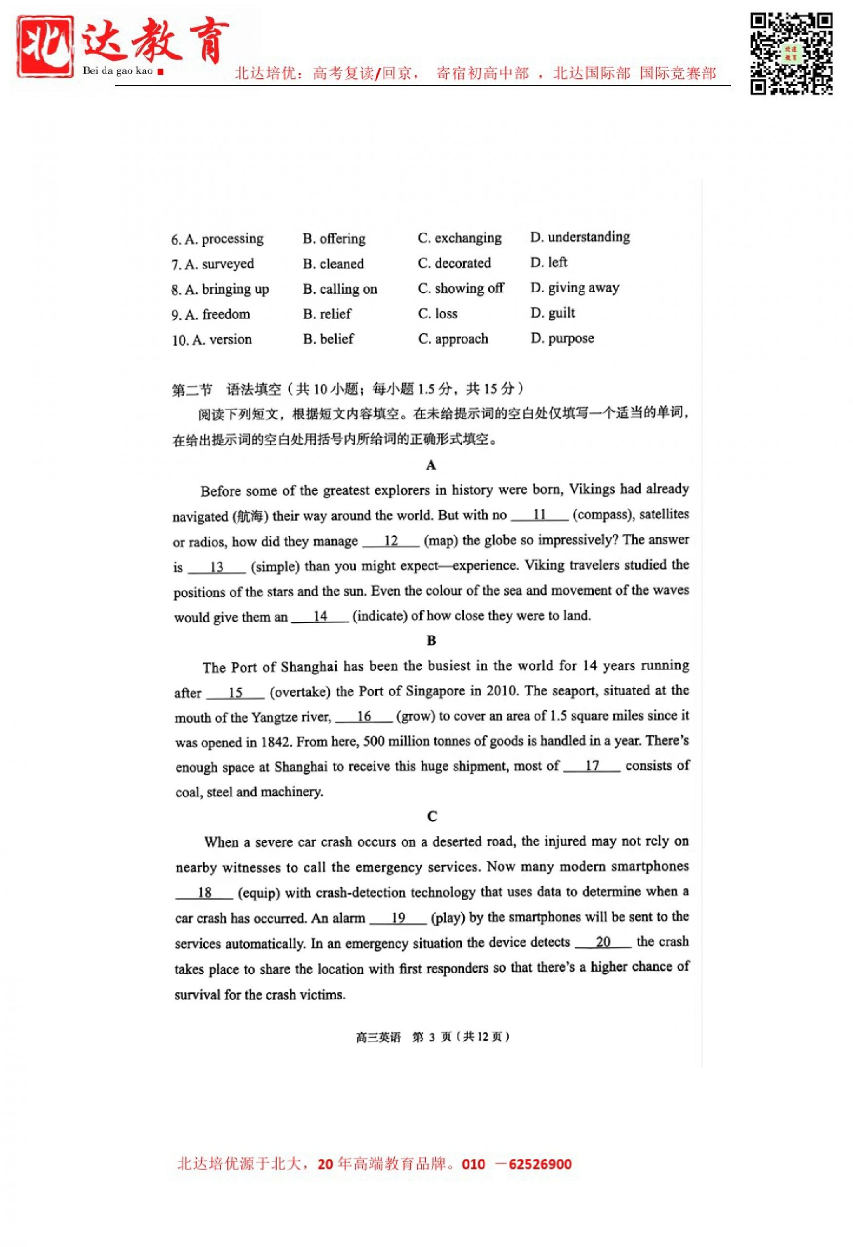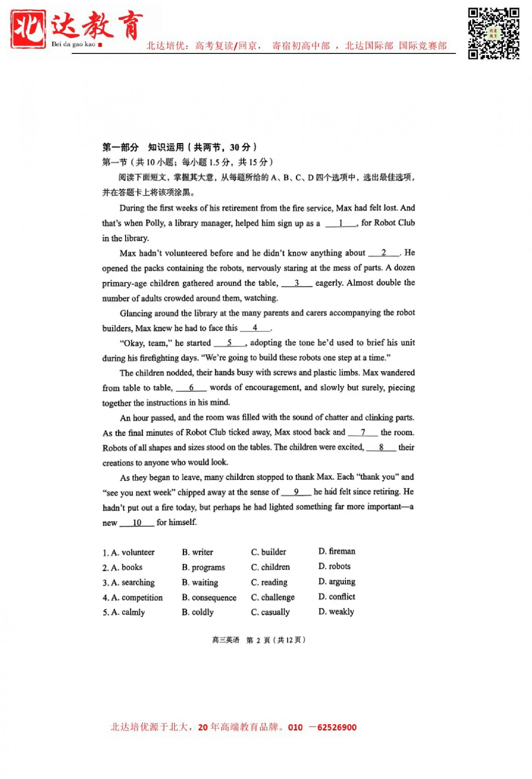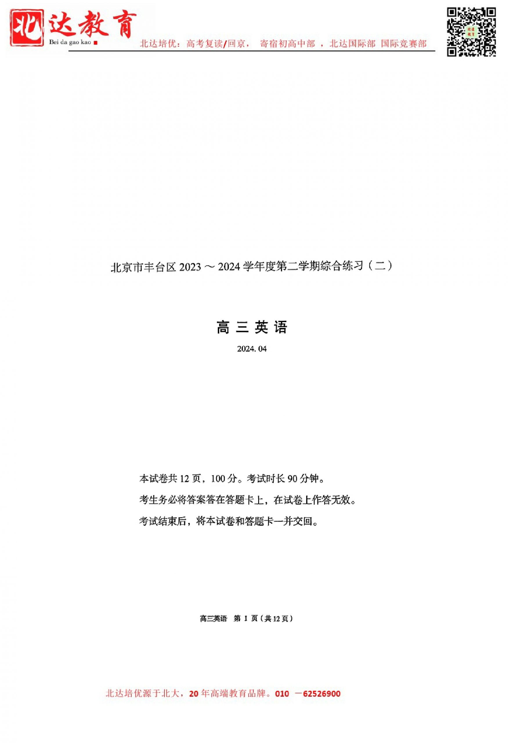 2024年北京丰台高三二模开考,admw360教研组收集并整理了2024北京丰台高三二模英语试卷及答案,分享给同学们。