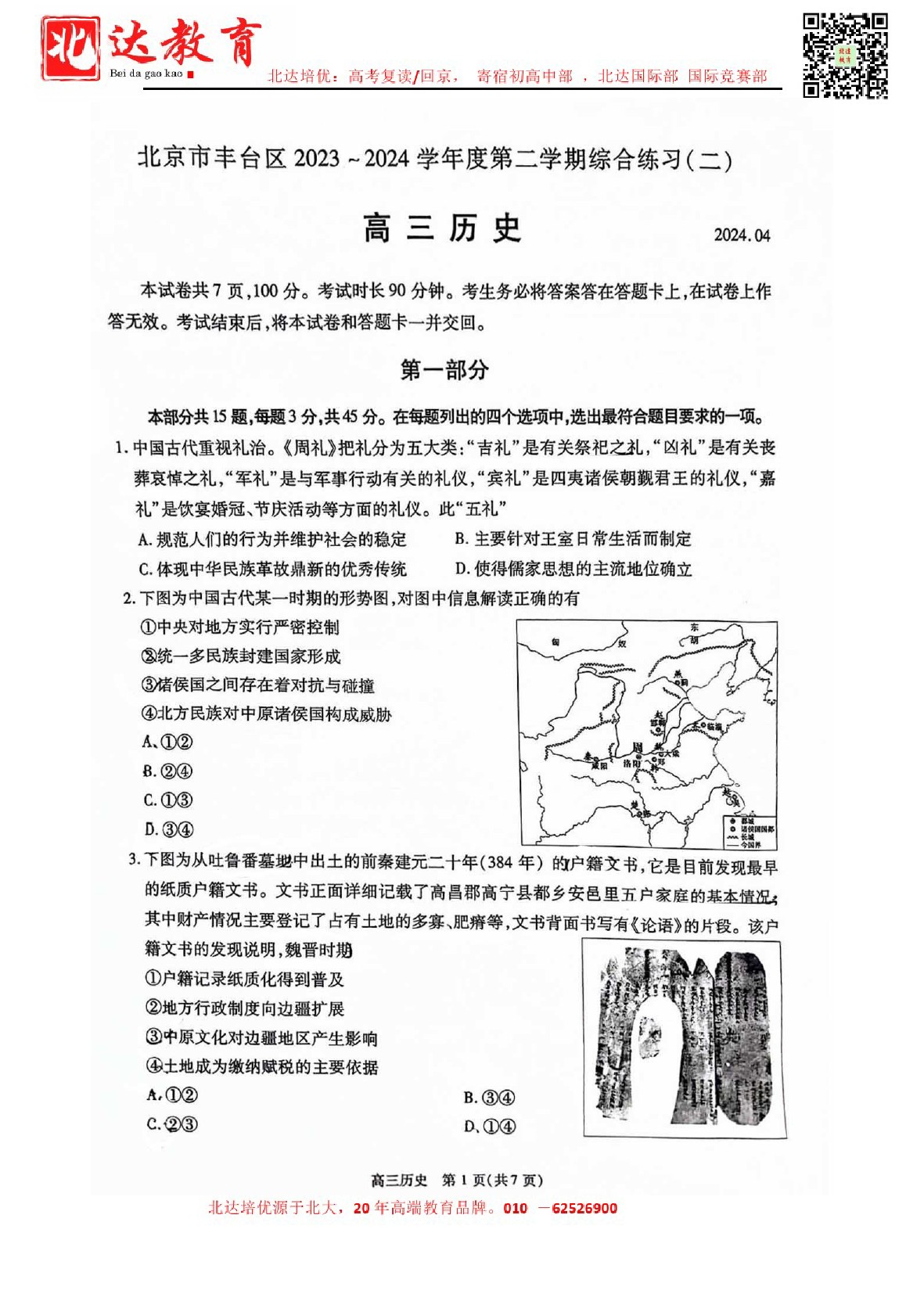 2024年北京丰台高三二模开考,admw360教研组收集并整理了2024北京丰台高三二模历史试卷及答案,分享给同学们。