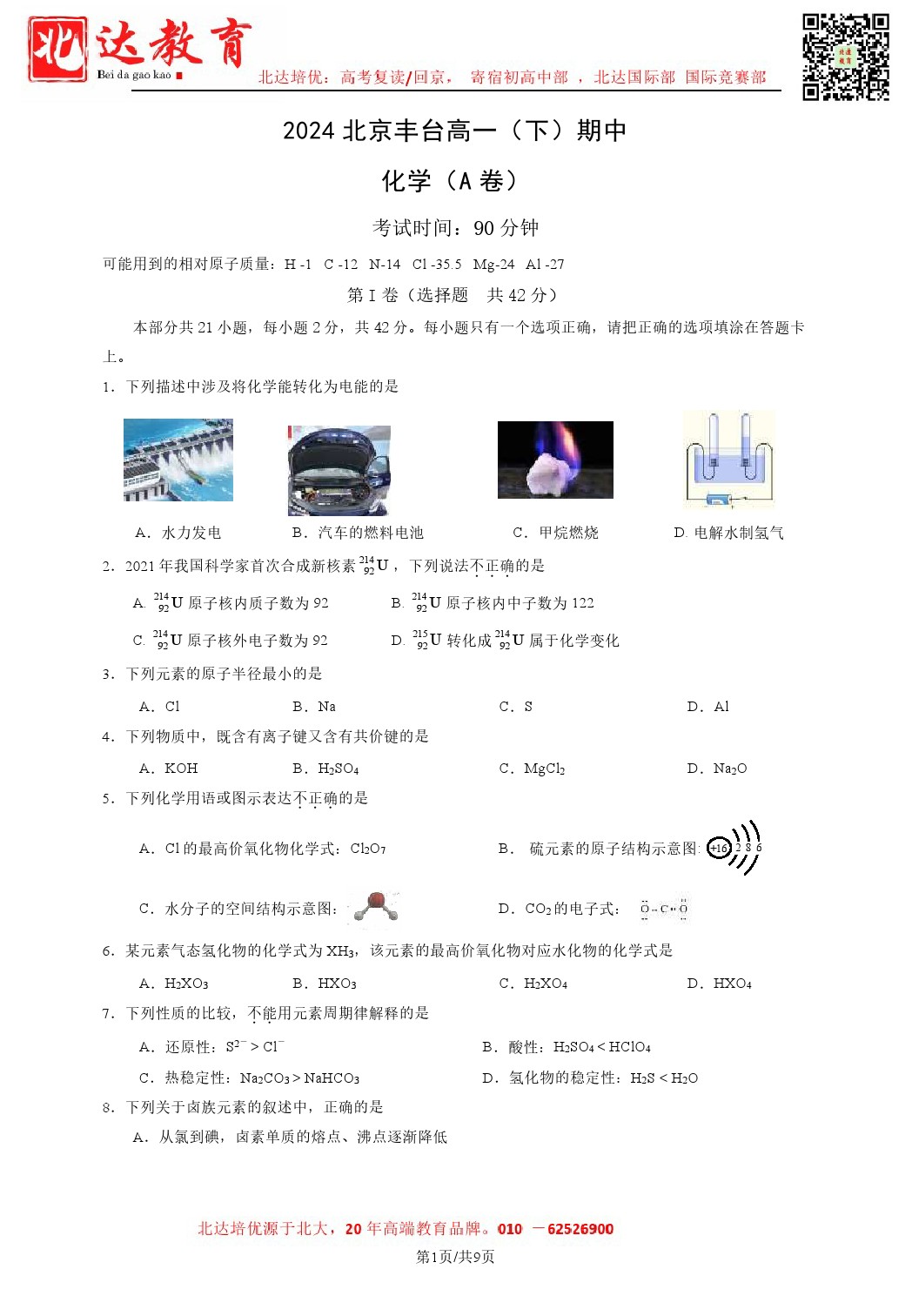 2024年北京丰台高一(下)期中开考,admw360教研组整理了2024北京丰台高一(下)期中化学(A卷)试卷含答案,分享给同学们。 导读推荐:2024北京各区高一(下)期中试题及答案汇总 …