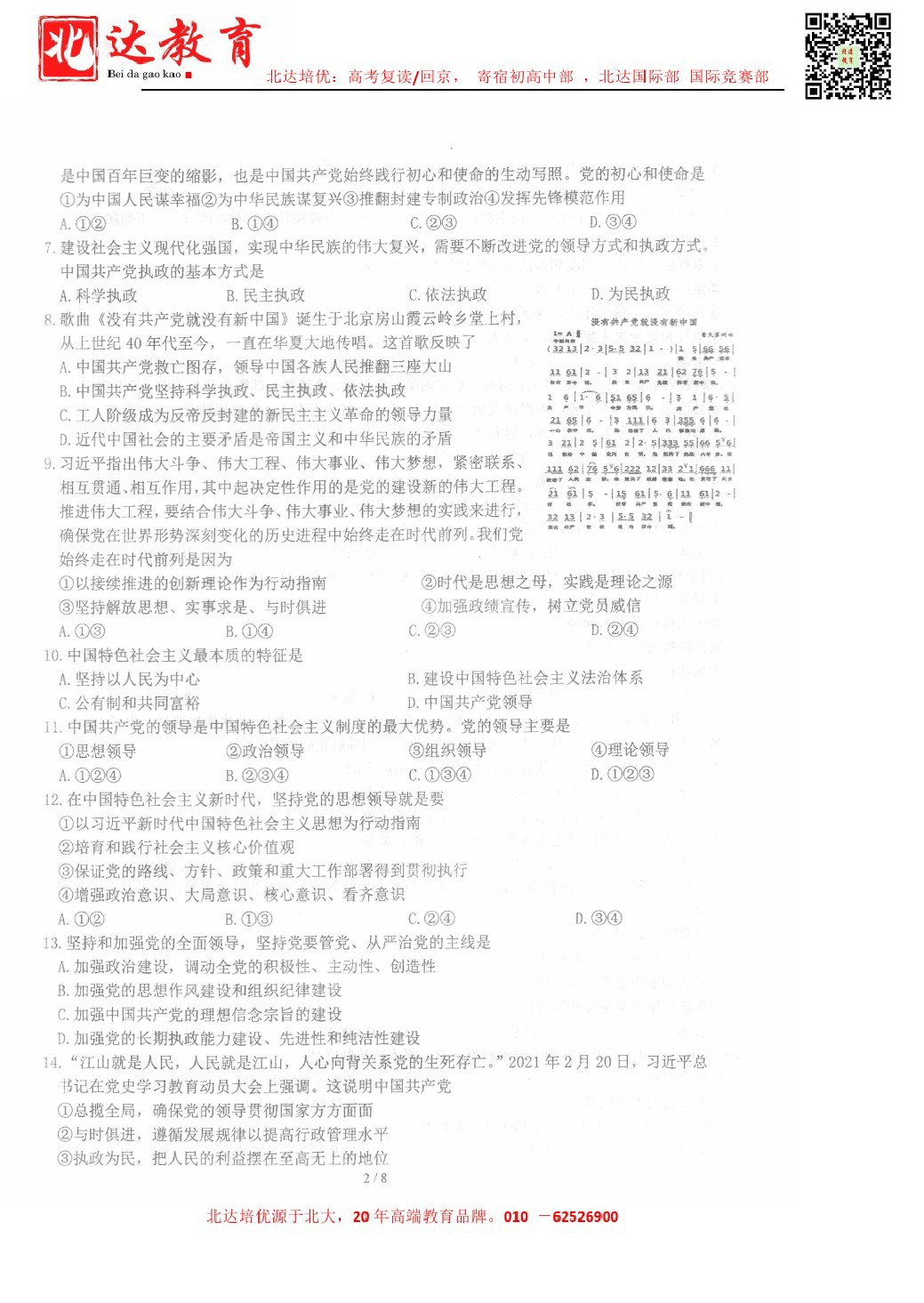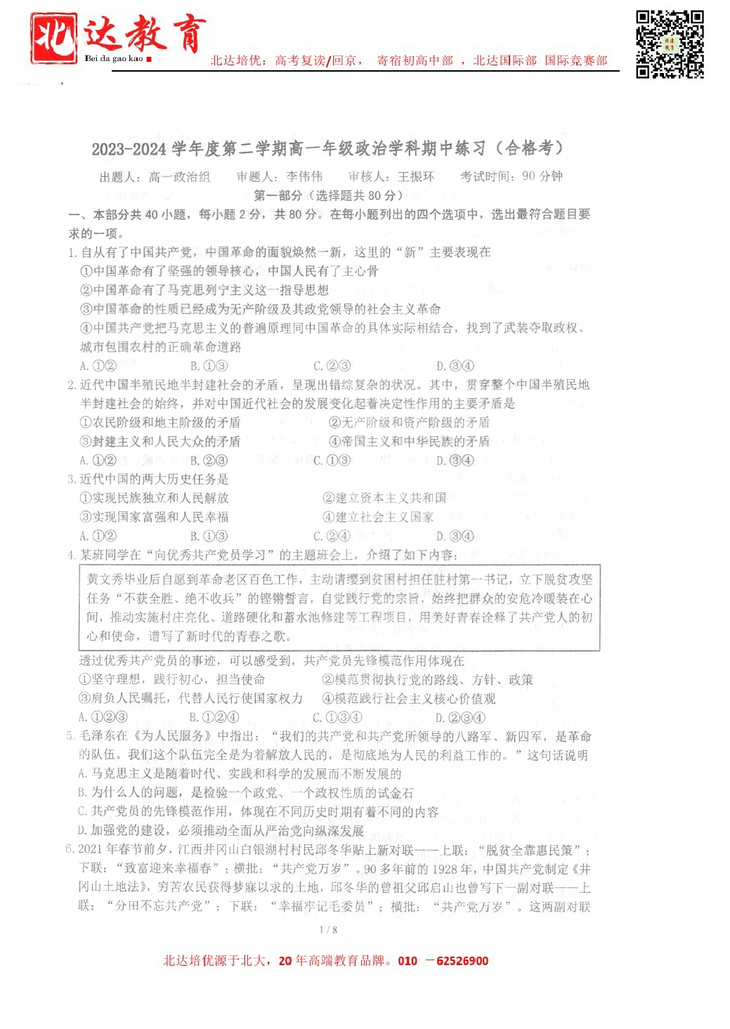 2024年北京理工大附中高一(下)期中开考,admw360教研组整理了2024北京理工大附中高一(下)期中政治(合格考)试卷,分享给同学们。