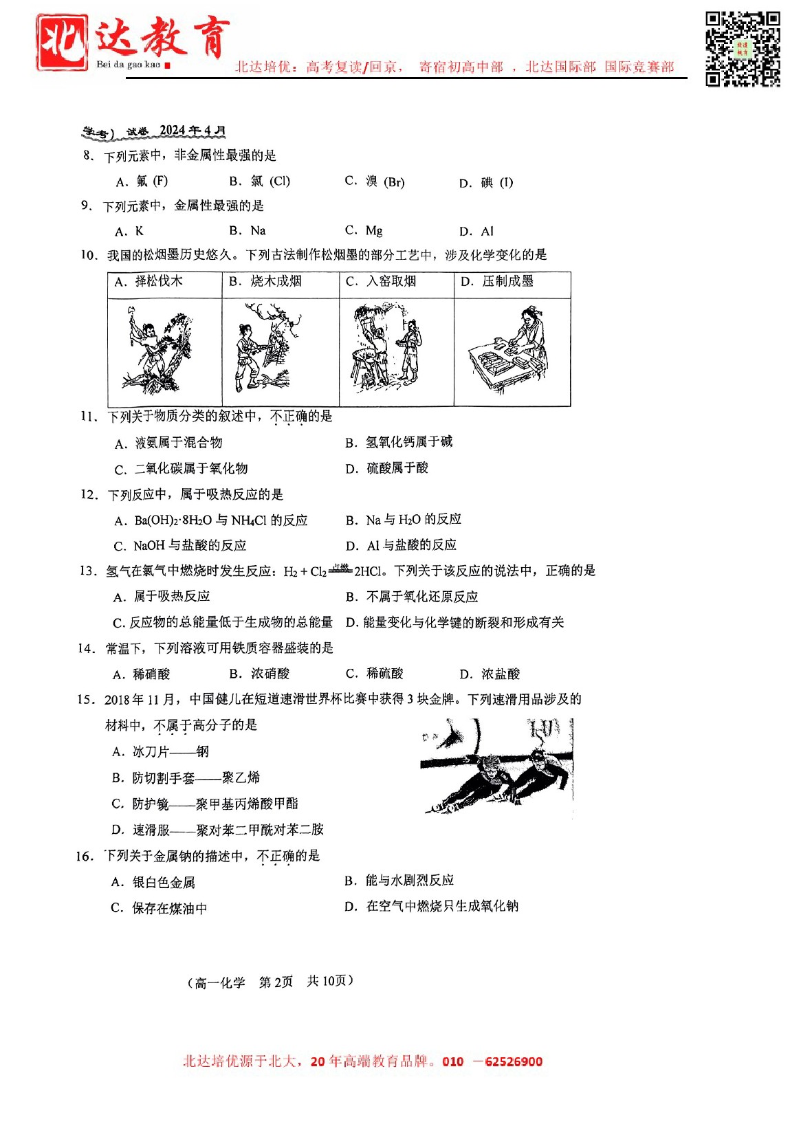 2024年北京八十中高一(下)期中开考,admw360教研组整理了2024北京八十中高一(下)期中化学试卷,分享给同学们。