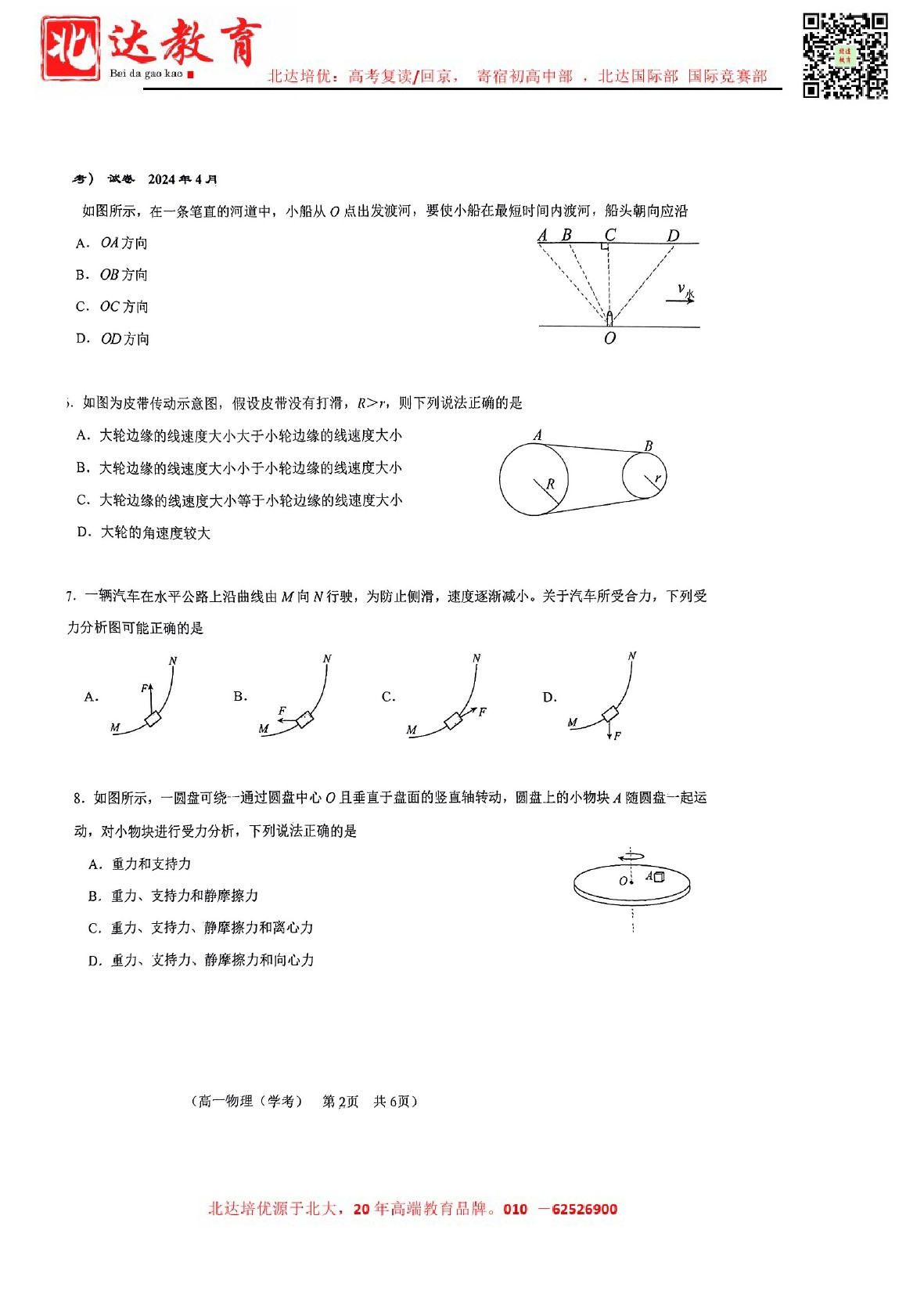 2024年北京八十中高一(下)期中开考,admw360教研组整理了2024北京八十中高一(下)期中物理试卷,分享给同学们。 导读推荐:2024北京各区高一(下)期中试题及答案汇总 北京admw360全…