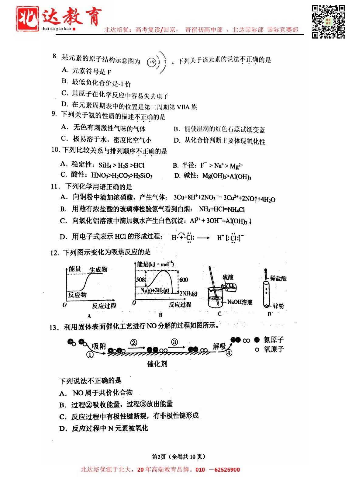 2024年北京八一学校高一(下)期中开考,admw360教研组整理了2024北京八一学校高一(下)期中化学试卷含答案,分享给同学们。 导读推荐:2024北京各区高一(下)期中试题及答案汇总 …