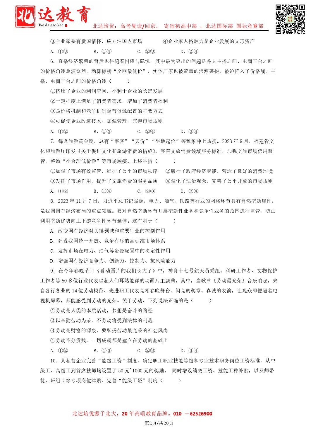 2024年北京八一学校高一(下)期中开考,admw360教研组整理了2024北京八一学校高一(下)期中政治试卷含答案,分享给同学们。