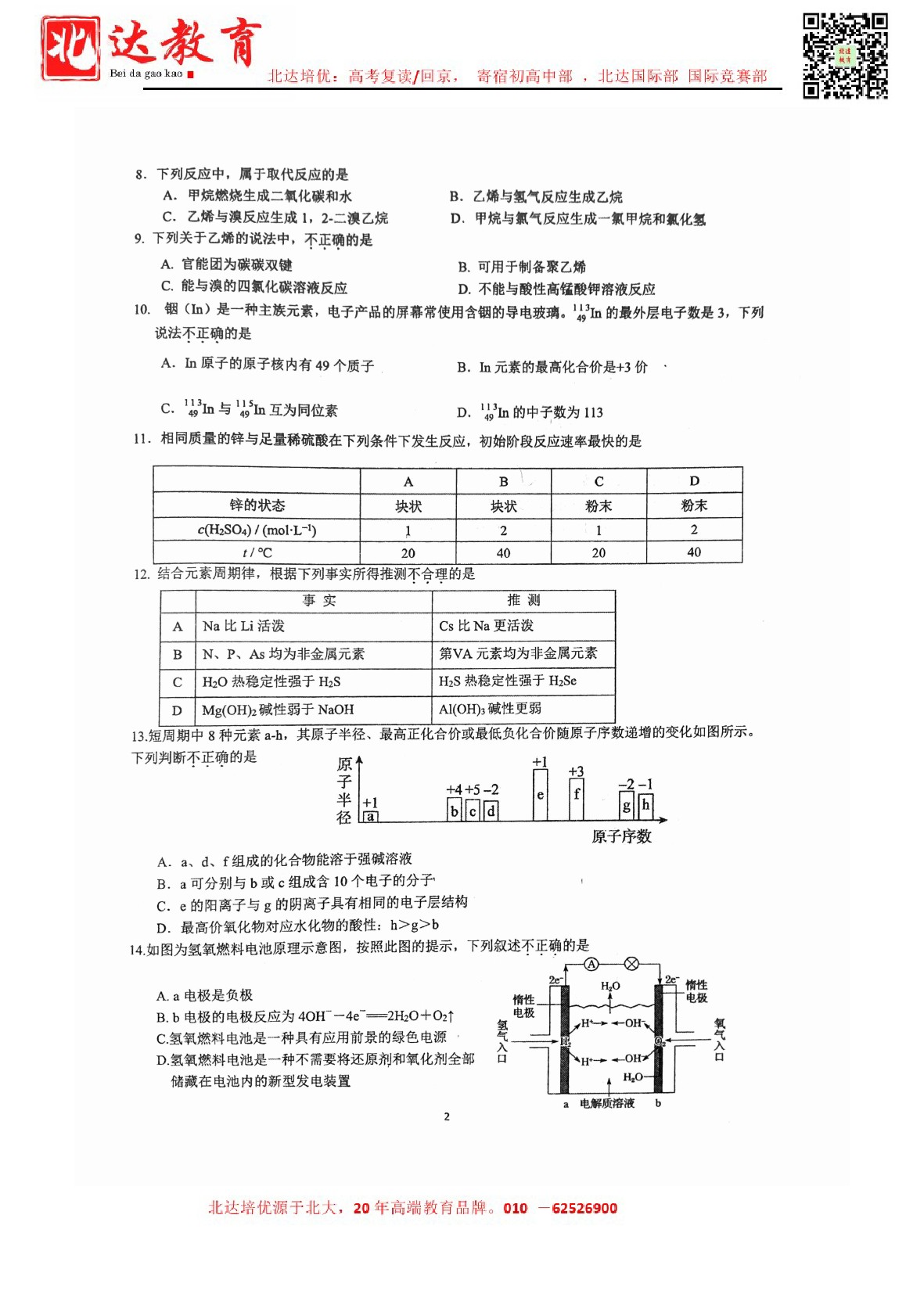 2024年北京交大附中高一(下)期中开考,admw360教研组整理了2024北京交大附中高一(下)期中化学试卷含答案,分享给同学们。