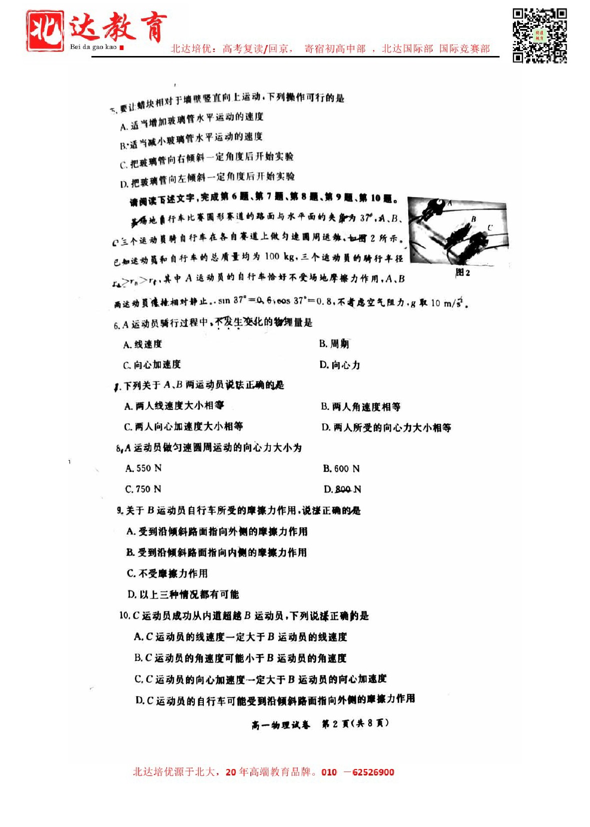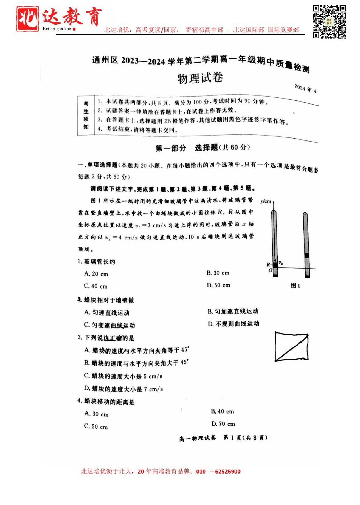 2024年北京通州高一(下)期中开考,admw360教研组整理了2024北京通州高一(下)期中物理试卷含答案,分享给同学们。 导读推荐:2024北京各区高一(下)期中试题及答案汇总 北京admw360…