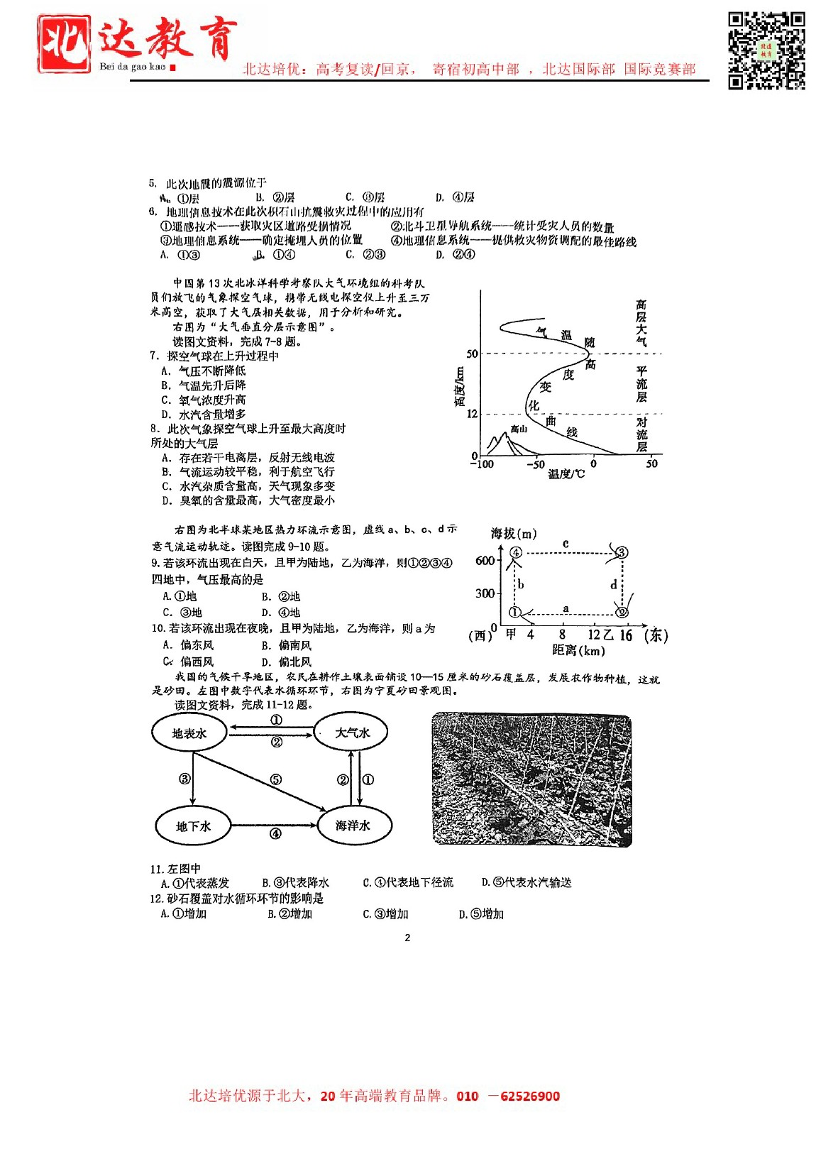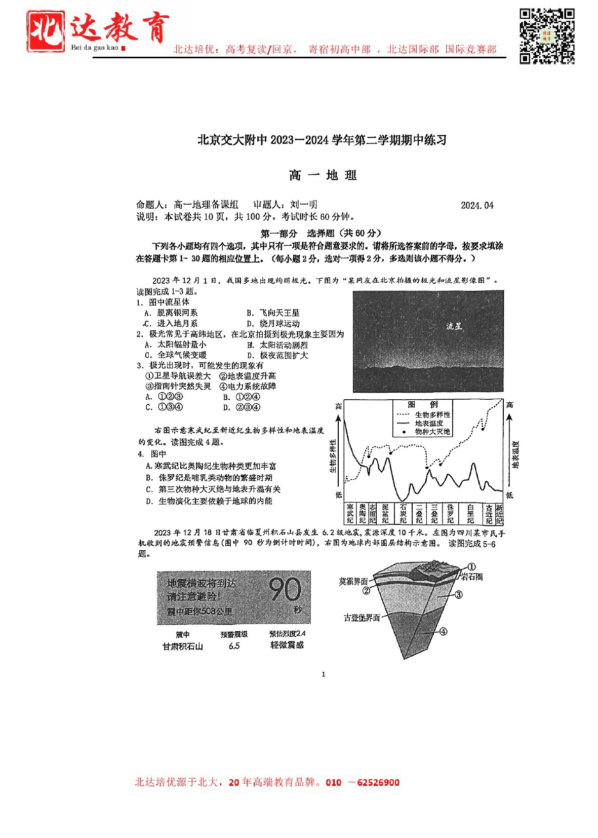 2024年北京交大附中高一(下)期中开考,admw360教研组整理了2024北京交大附中高一(下)期中地理试卷含答案,分享给同学们。