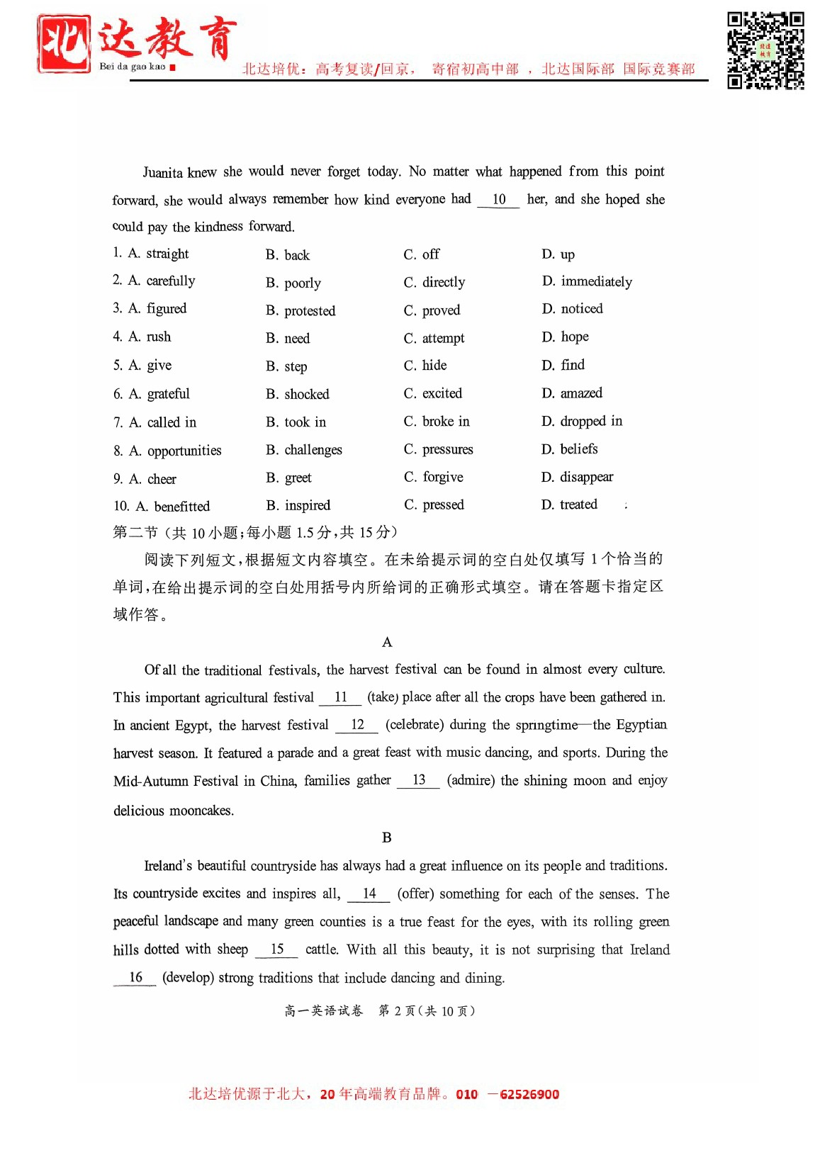 2024年北京通州高一(下)期中开考,admw360教研组整理了2024北京通州高一(下)期中英语试卷含答案,分享给同学们。