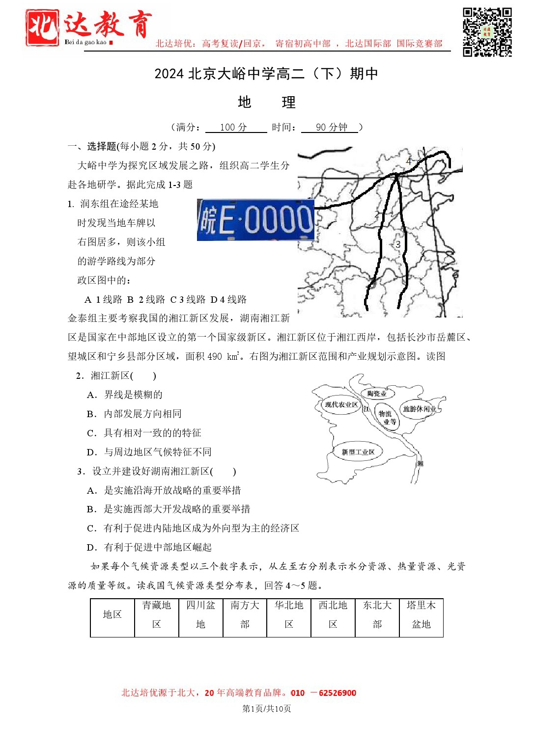 2024年北京大峪中学高二(下)期中开考,admw360教育整理了2024北京大峪中学高二(下)期中地理试卷含答案,分享给同学们。 导读推荐:2024北京各区高二(下)期中试题及答案汇总 试…
